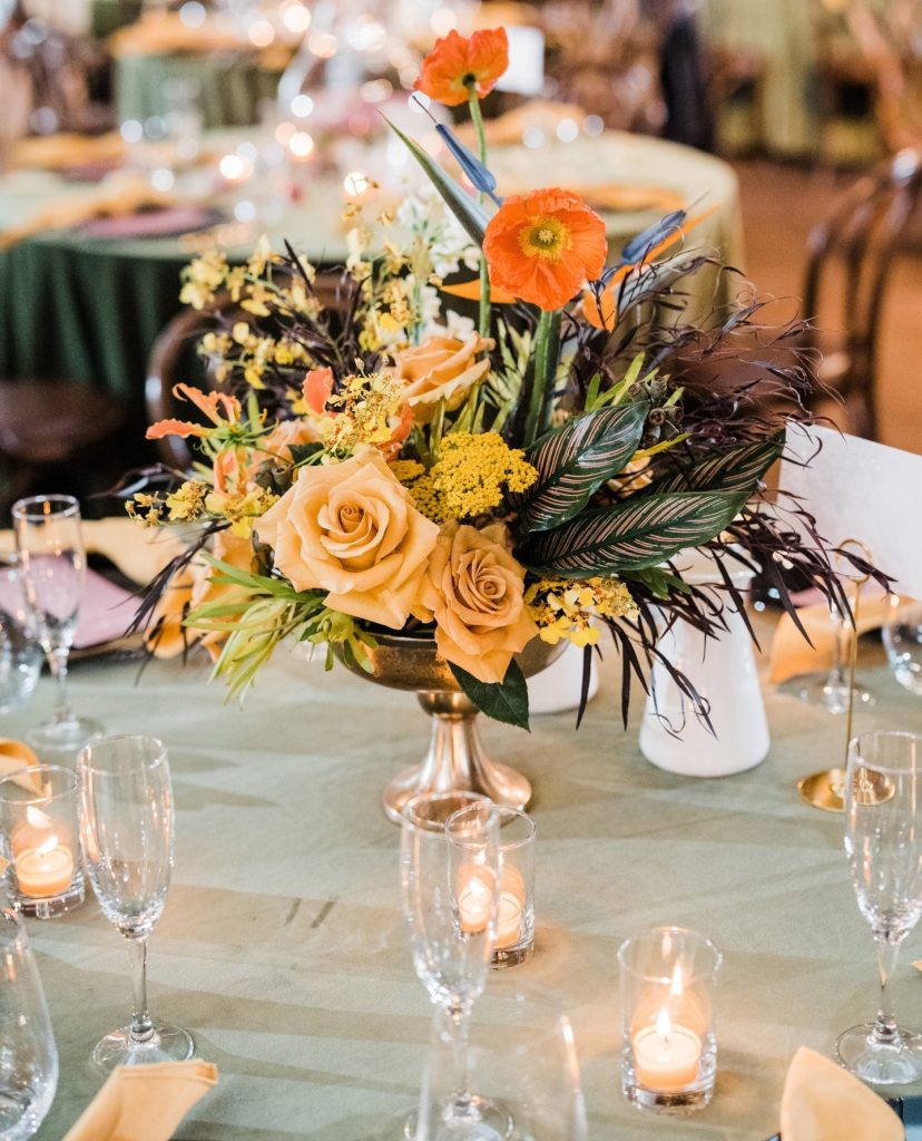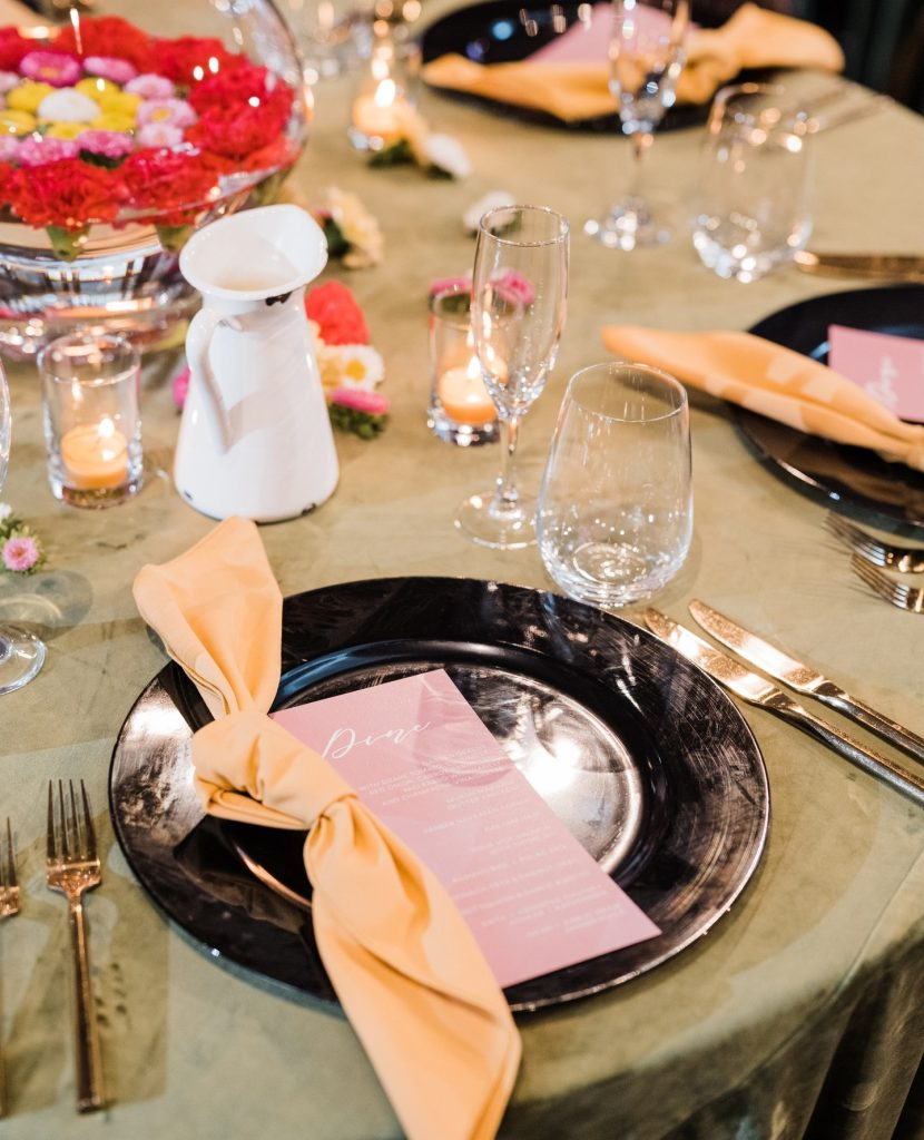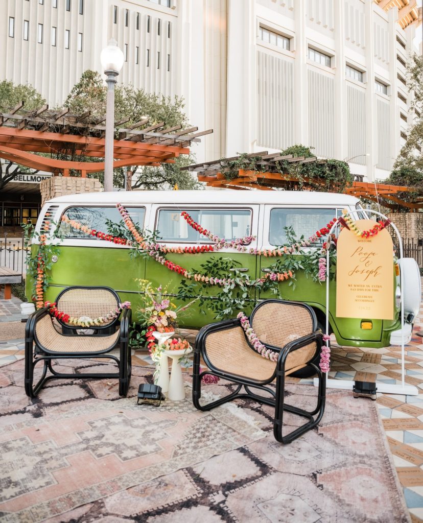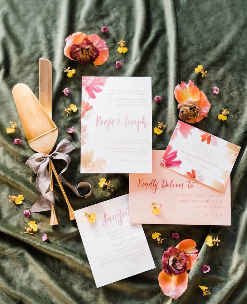 “Most Indian weddings are three days long, but this one was three days over three years! We had a civil ceremony in 2020, a Hindu ceremony in 2021, and our reception in 2022. Although the reception was missing many of the traditional elements of an Indian wedding, we still honored my heritage by including Indian touches of food, attire, jewelry, music, a dance performance by friends and a dhol drummer on the dance floor.” – Pooja + Joe