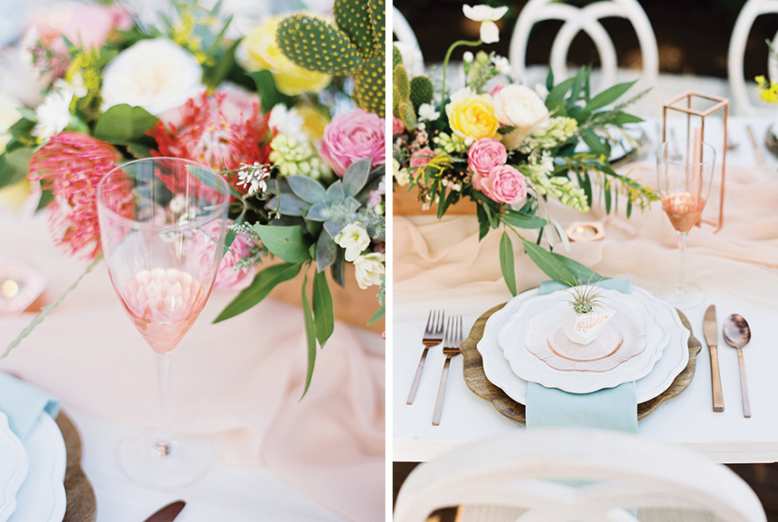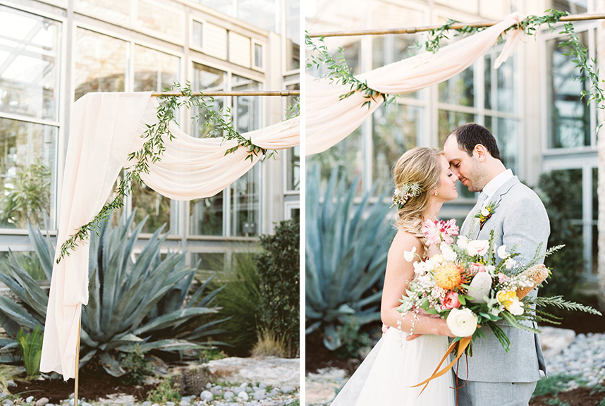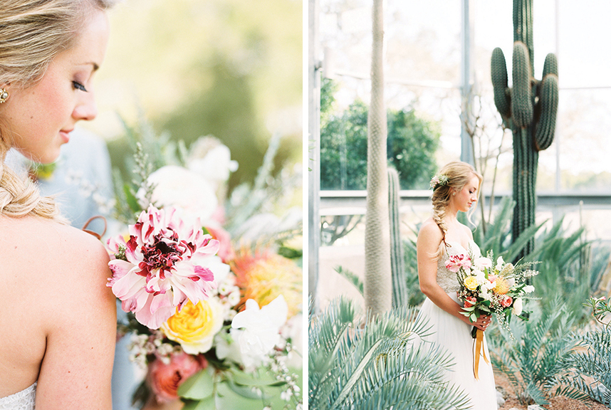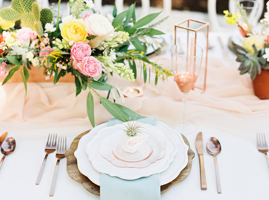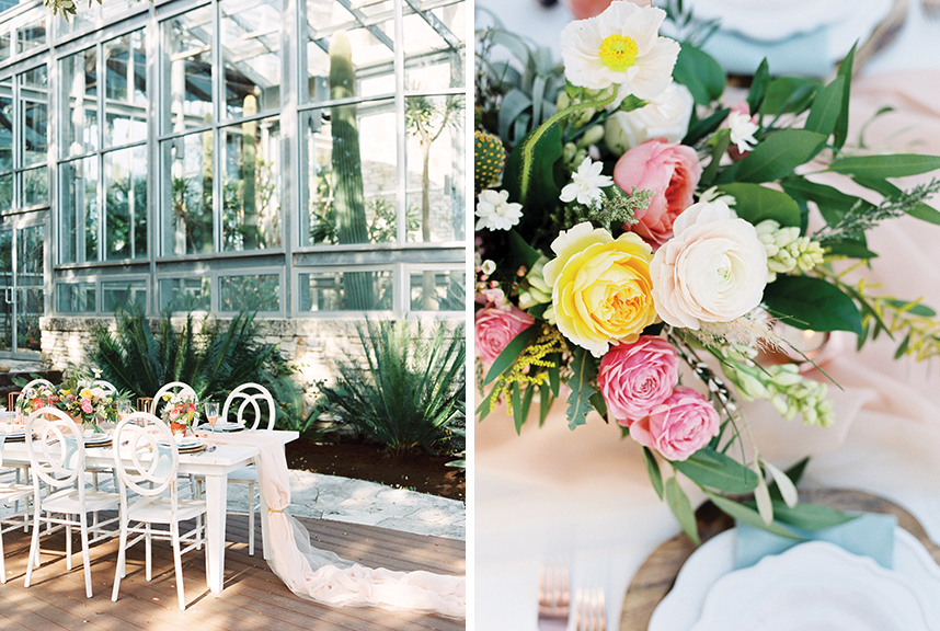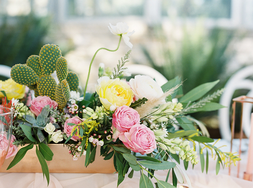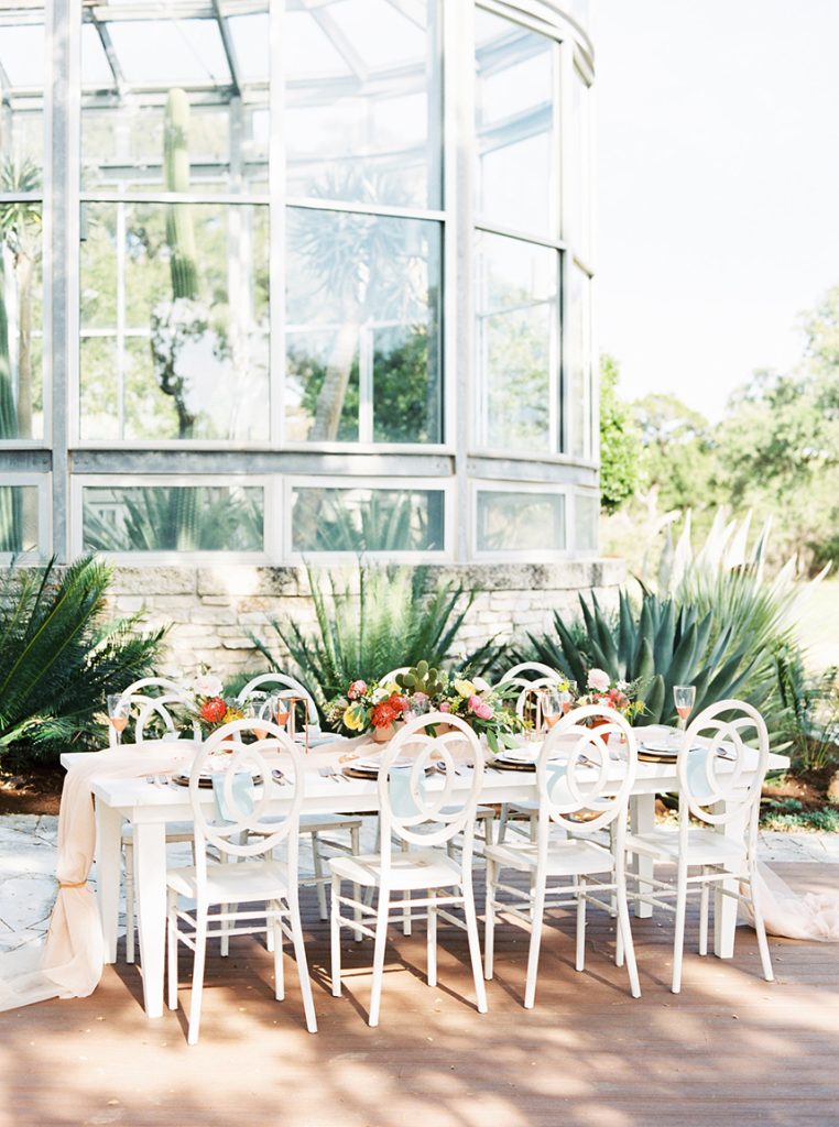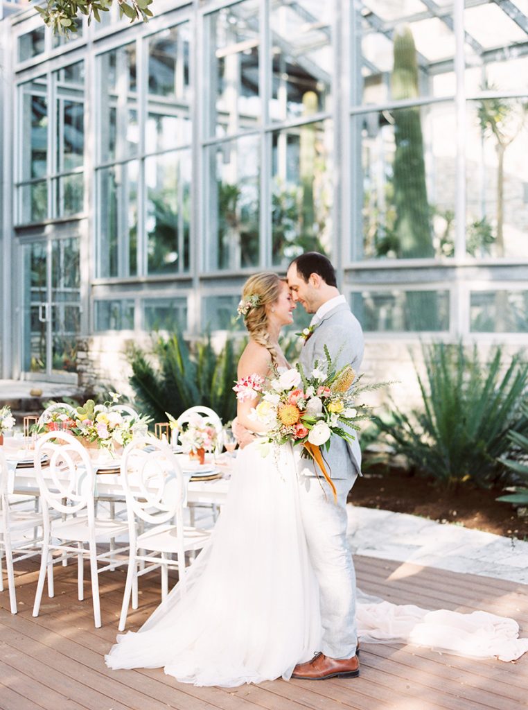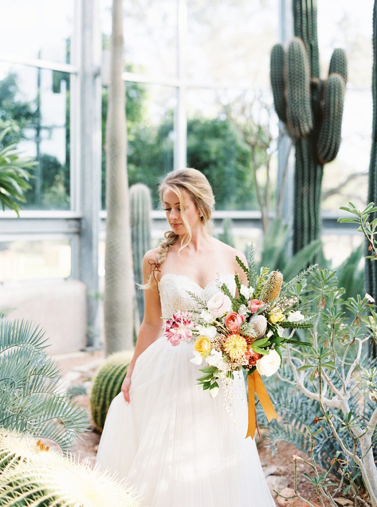 New year, new wedding inspiration! We are kicking off 2017 with some amazing new shoots, like this stunning colorful southwestern wedding inspiration styled by Highland Avenue Events. The Greenhouse at Driftwood was the perfect venue for the ethereal and boho theme. Beautiful blooms by Gypsy Floral embellished the unique location with pops of warm colors. The table was set with a cactus-filled centerpiece and vintage place settings from Loot Vintage Rentals topped with mini airplants. Marquee Event Group ad Premiere Events finished the scene with lovely, unique rental pieces throughout the table, altar and greenhouse scenes. We couldn’t help but share this playful shoot with our brides-to-be! Enjoy!