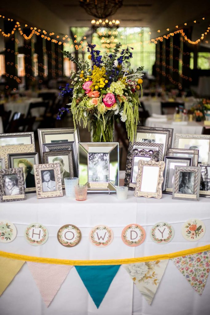 SPECIAL TRADITIONS: Caitlin and Kellan set up a family tree table with photos dating back to their grandparents’ era so that family members they missed could be with them on their special day.
