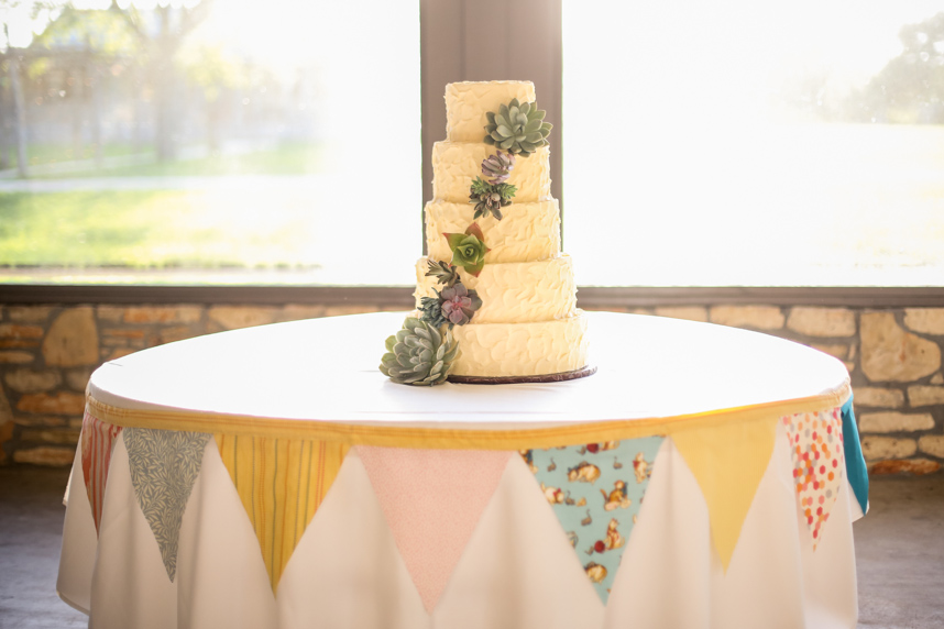 SAVORY SWEETS: The cake was a five-tiered masterpiece featuring a cascade of succulents. Each tier was a different delicious flavor.