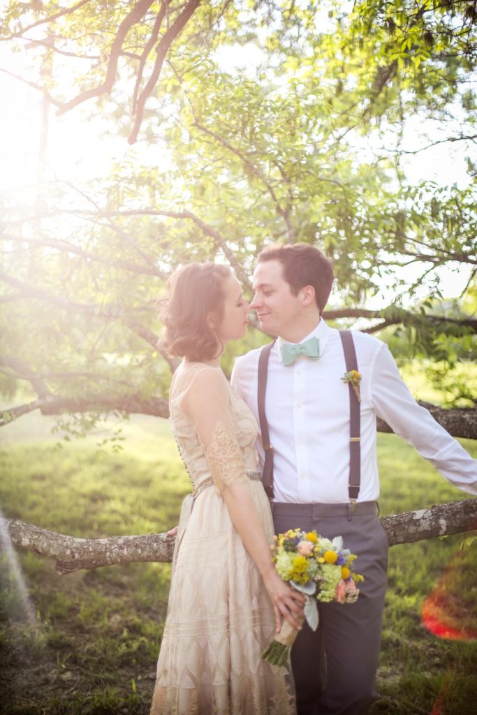 THE SETTING: Caitlin and Kellan were married at the Pecan Grove on a large, rustic pavilion surrounded by acres of giant pecan trees and a small creek. The bride grew up in Texas Hill Country, so being there was nostalgic for her. In addition, the Pecan Grove is owned and operated by The Salt Lick, a favorite meal of the groom!