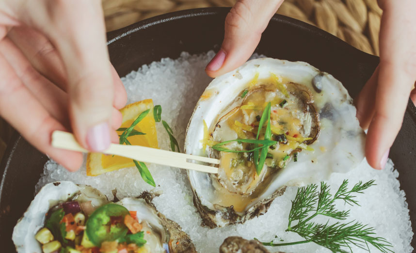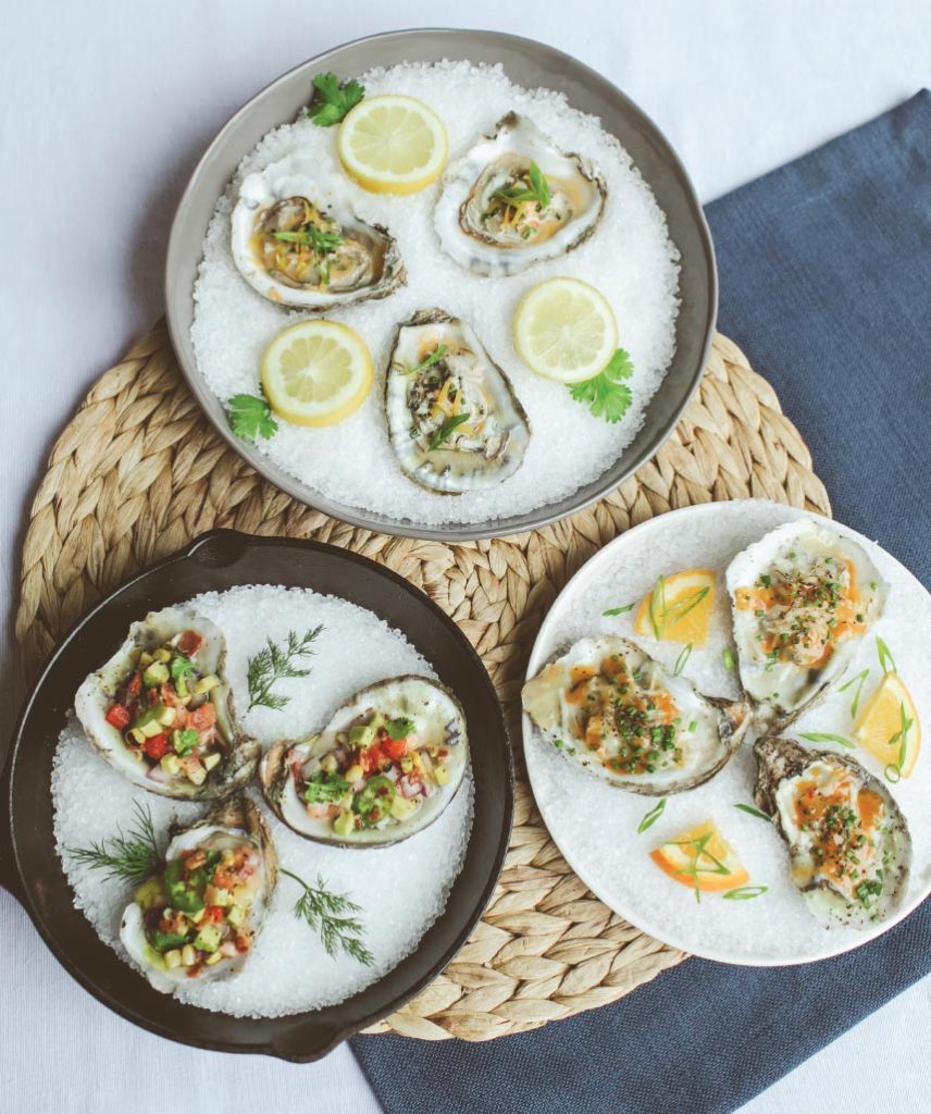 BBQ Oyster – Parmesan jack cheese, garlic herb, butter spicy barbeque sauce, garlic dry rub, garnished with chives