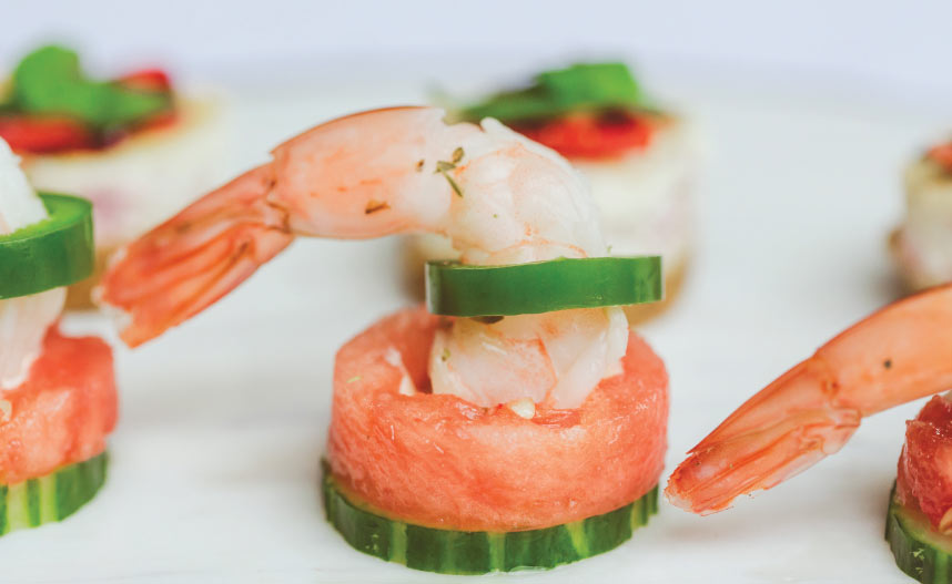 Twisted Pickle Shrimp – Shrimp pickled with Texas Vodka brine atop jalapeno watermelon