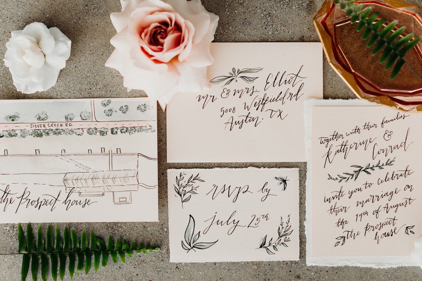 From the planner: “This modern, vintage shoot was an absolute blast to create. With a team made up of only women vendors running the show, all I had to do was sit back and let my boss babes channel their creative vibes. I partnered with Marry Me in Spring for this shoot, to promote her live wedding illustration services – a unique addition to any wedding. Having her paint live, in-person and on-site for this event was amazing. And, the venue. What can I say about Prospect House – they have an amazing space. I absolutely love working with them – they are one of KJE’s favorite partners. I’ve always dreamed of doing a styled shoot in their space and am proud to say that my dream is now a reality. The KJE team is proud of this shoot and couldn’t be happier with how everything turned out. I will forever promote these amazing boss babes I got to work with and I truly believe only a team made of solely lady vendors could have made a styled shoot look this good.”