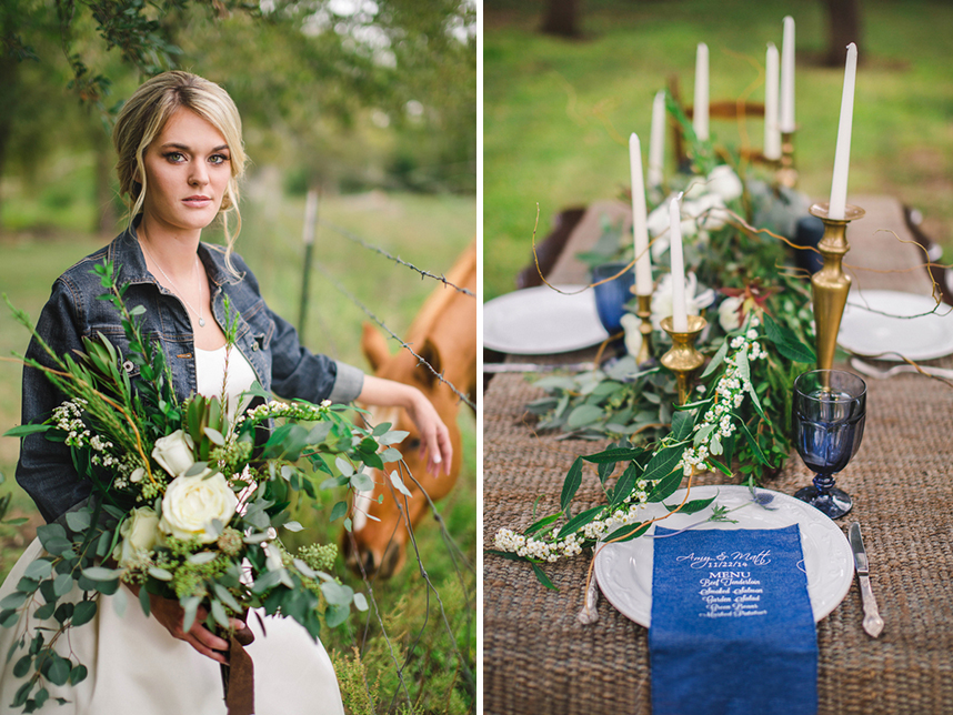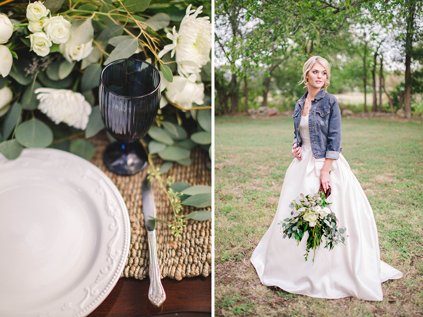 What’s more perfect than a Hill Country wedding full of southern charm? This country wedding inspiration from Bee Lavish and Pink Parasol Design couldn’t have been more sweet. We are swooning over the feminine cake by LoveBirds Sweets and denim jacket paired with the gorgeous Serendipity Bridal gown. The bride’s romantic updo and soft makeup by Weddings by Celissa Rae were the perfect finishing touches to the look. These amazing Austin wedding vendors have definitely pulled off a charming country styled shoot with just the right amount of girlie flair!