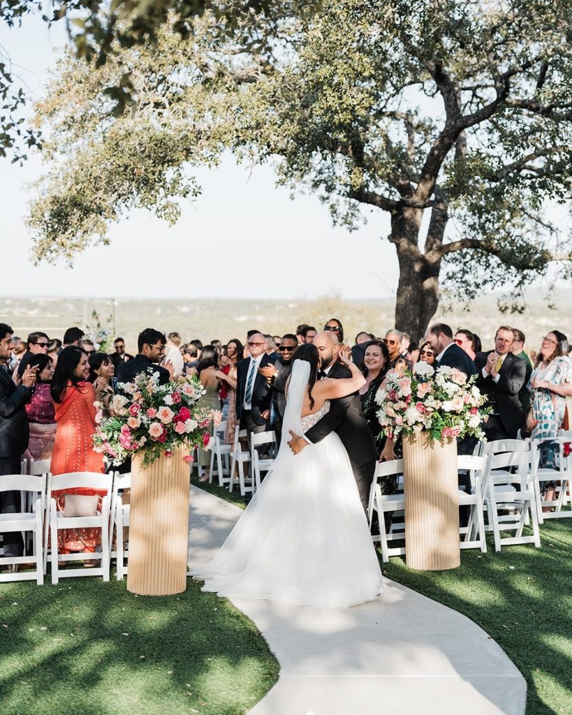 Courtney + Akhil threw the ultimate Indian fusion wedding at maesridge. They celebrated with two stunning ceremonies, a vibrant Hindu ceremony with a rickshaw baraat, mandap, and traditional lehenga + sherwani, followed by a western ceremony in the grove overlooking the Hill Country. Swipe to see all the fun that was had and their stunning outfit changes. ⁠?