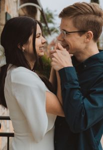 Captured in effortlessly beautiful photos by Emily Figurelli Photography, this couple’s engagement session around the property at The Contemporary Austin – Laguna Gloria is so flirty and cute! Kelly and John’s story began when they first met in college! The pair became fast friends, hiding not-so-secret crushes on each other for years. As time passed, their flirtatious friendship progressed, and they eventually began dating soon after graduating college – ready to move on to their next stage of life together. When the time is right, you just know! They look so ready to be wed in these sweet photos around Laguna Gloria which happens to be where they are tying the knot, a detail that is one of the soon-to-be bride’s favorites. “I just LOVE our venue,” Kelly says. “It embodies the wedding style we envisioned in every way imaginable.” In addition to its tropical-looking locale, John and Kelly’s ethereal garden ceremony will include a palette of whites, neutral tones, and soft blushes in May of 2021. We can’t wait to see all their romantic details captured beautifully like Emily Figurelli Photography does so well! Read on to hear Kelly’s sweet story about how John popped the question. Cheers to Kelly and John!