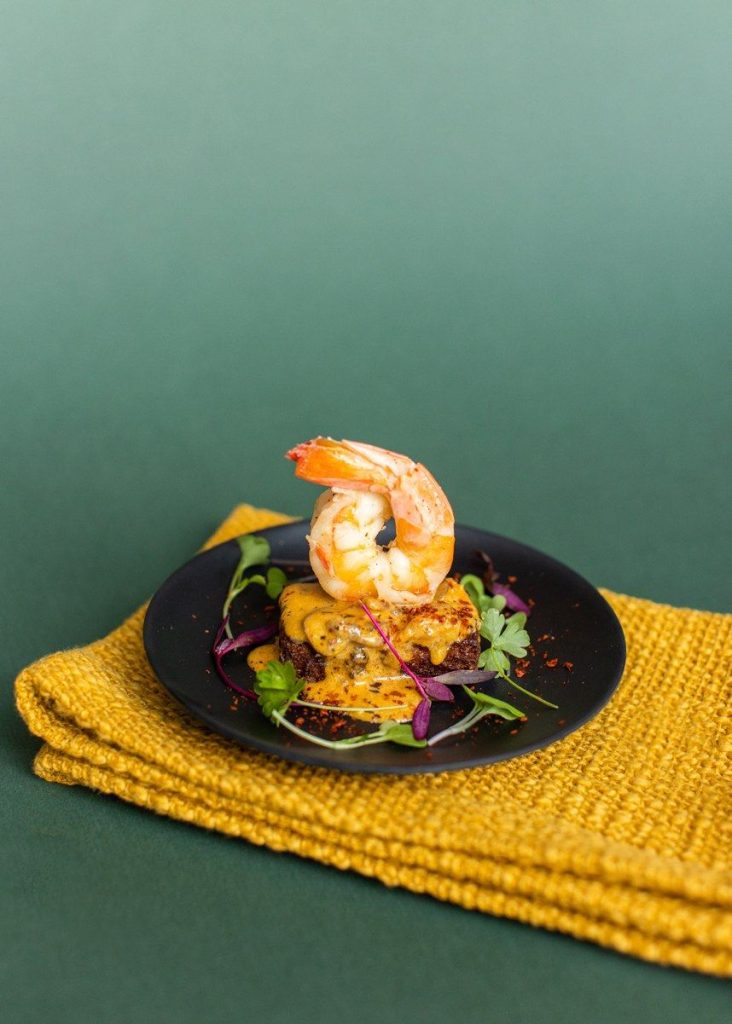 Hank’s| Shrimp served over a grit cake, topped with creole butter sauce with bacon and mushroom.