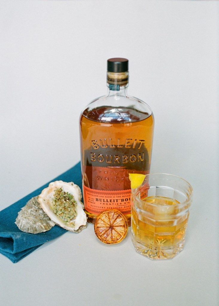 Austin Catering | Chargrilled oysters on the half shell with bacon-blue cheese compound butter, paired with a Sazerac cocktail.