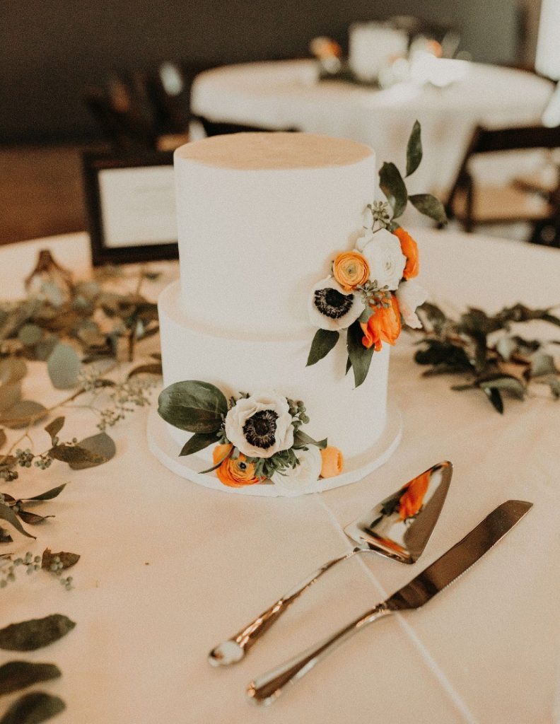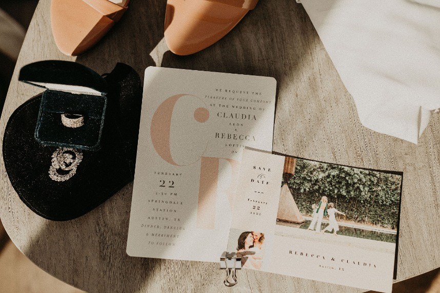 The beautiful ceremony incorporated a warm-toned pattern rug and a wooden triangle-shaped altar. After, Rebecca and Claudia changed for the reception into their custom suits to celebrate accordingly. They also enjoyed a delicious meal and drinks all night long from Austin Catering. Following dinner, everyone enjoyed a stunning cake incorporated with white frosting and a beautiful floral arrangement from Sweet Treats Bakery. The warmth and love perpetuated throughout the evening. Check out their dreamy desert chic wedding gallery below! Congratulations Mrs. and Mrs. Leon!