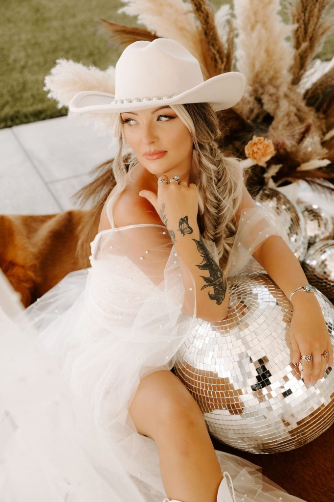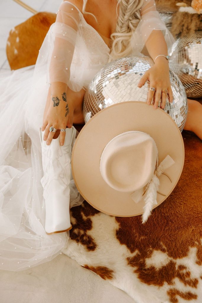 Southern Oaks and Co. brought her vision to life with this stunning disco cowgirl styled shoot, perfectly blending her signature love for creamy neutrals and timeless elegance.
