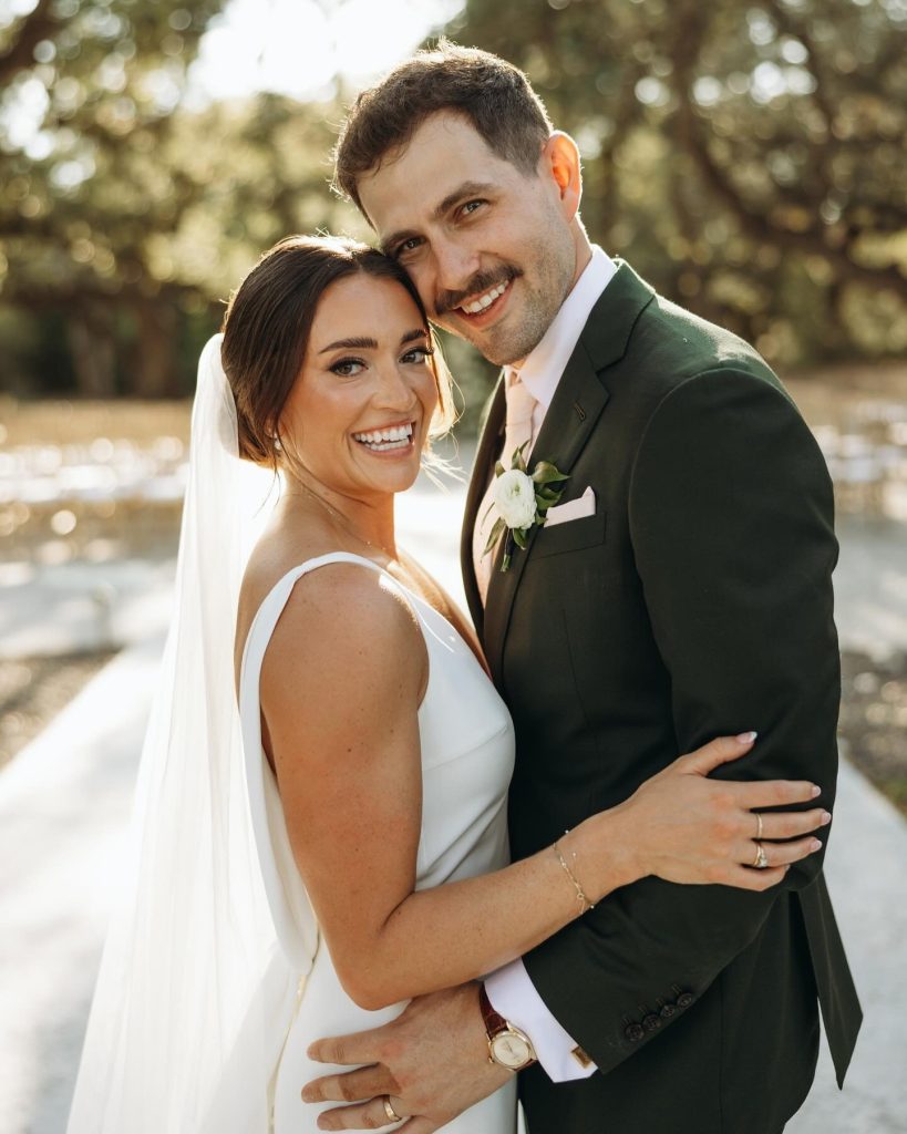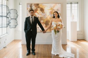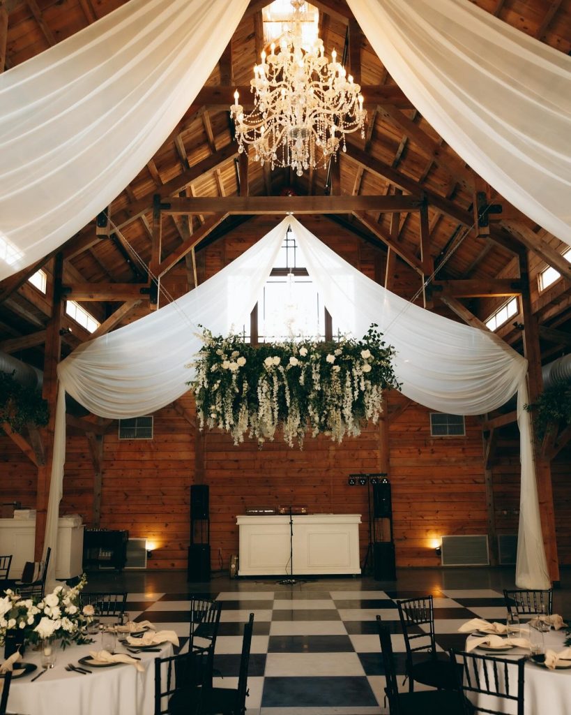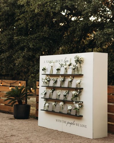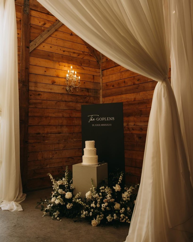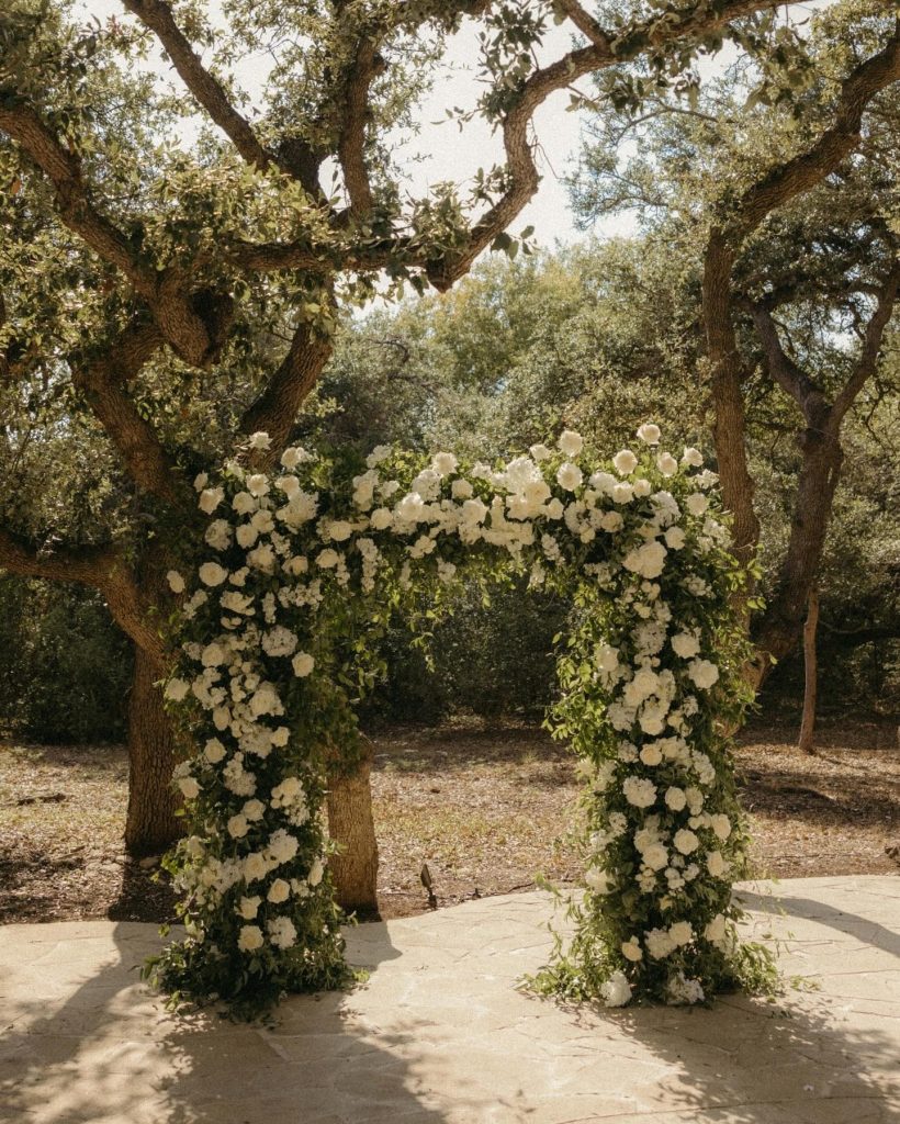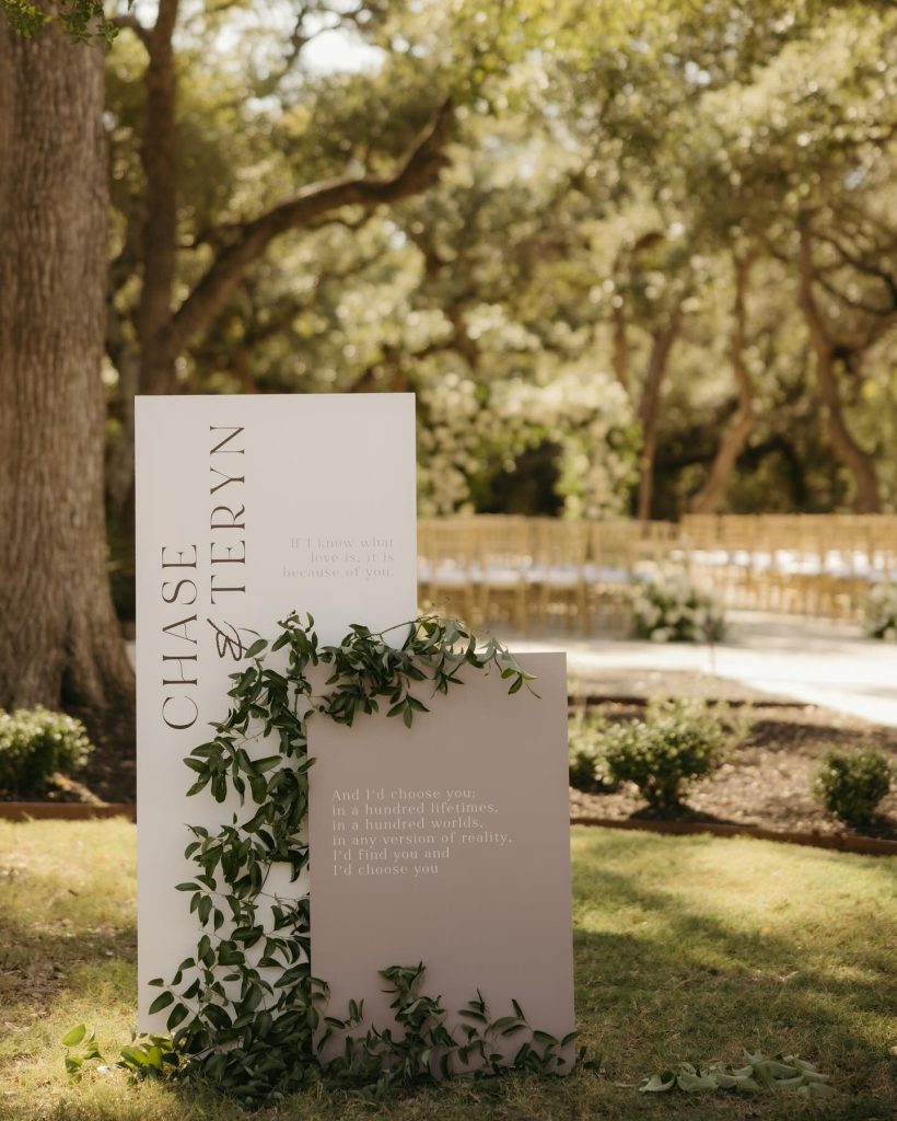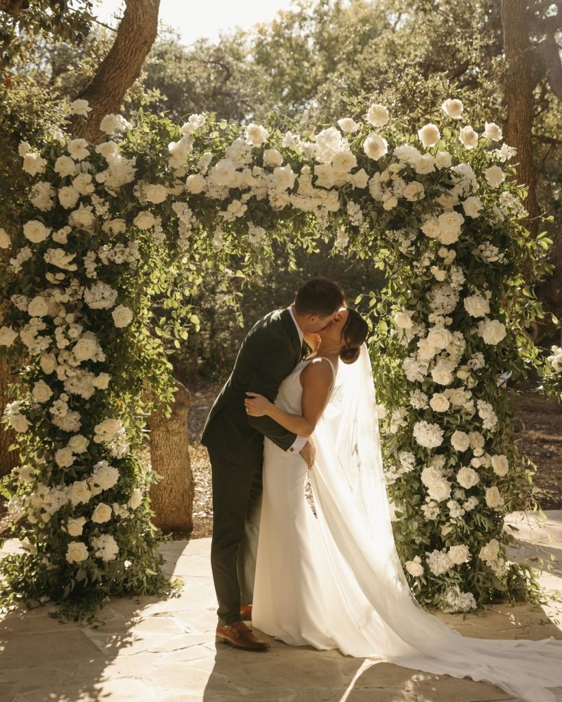 Teryn + Chase’s wedding at The Addison Grove was filled with the dreamiest details. The white florals mixed with greenery elevated the already beautiful space and made the perfect back drop for Alyssa Love Art to paint.