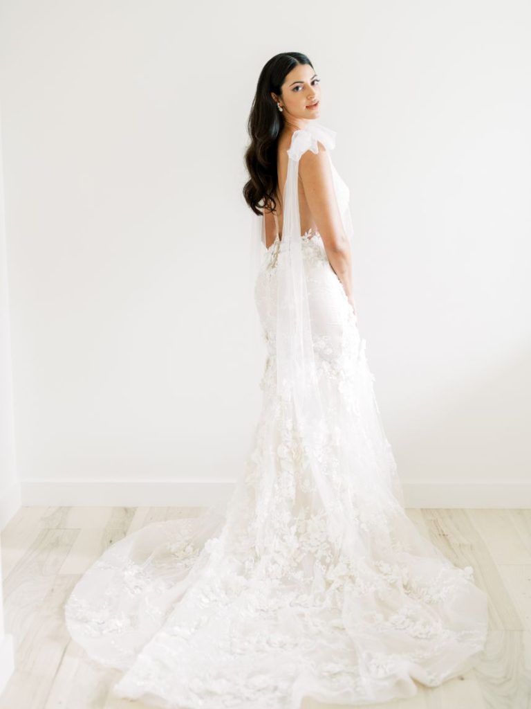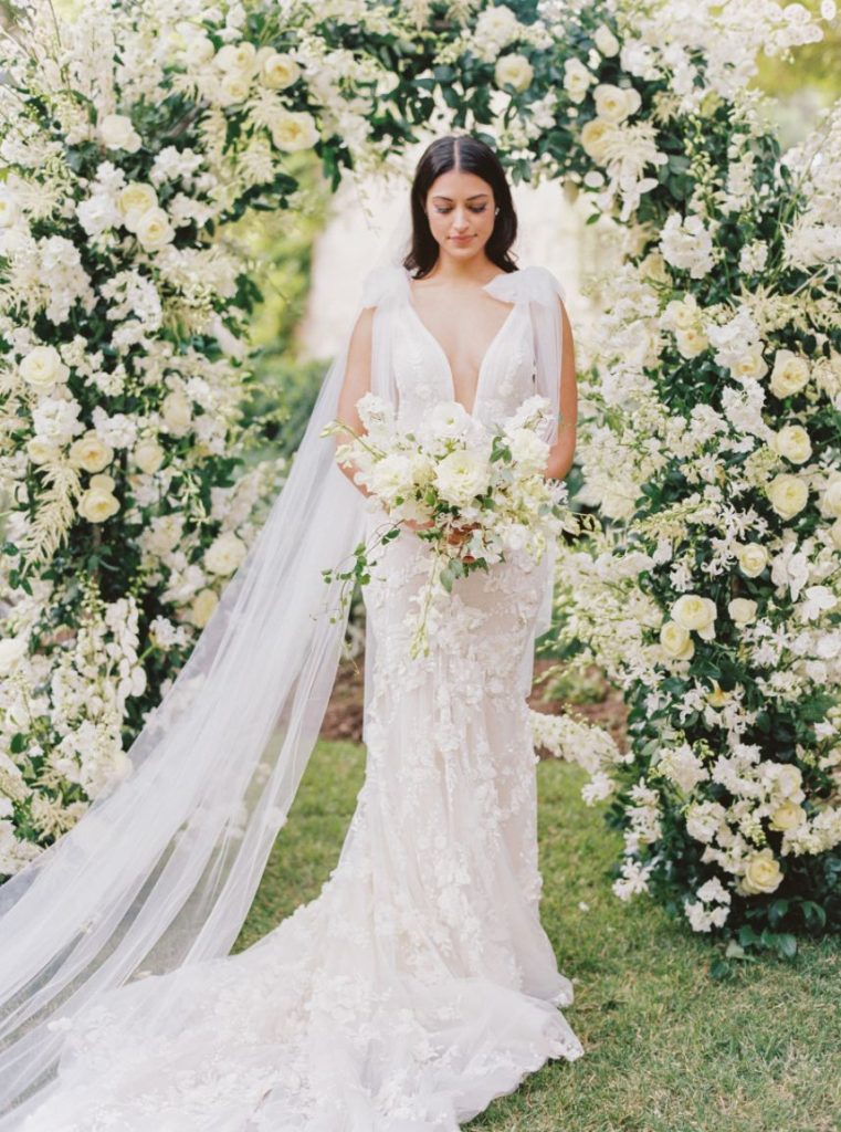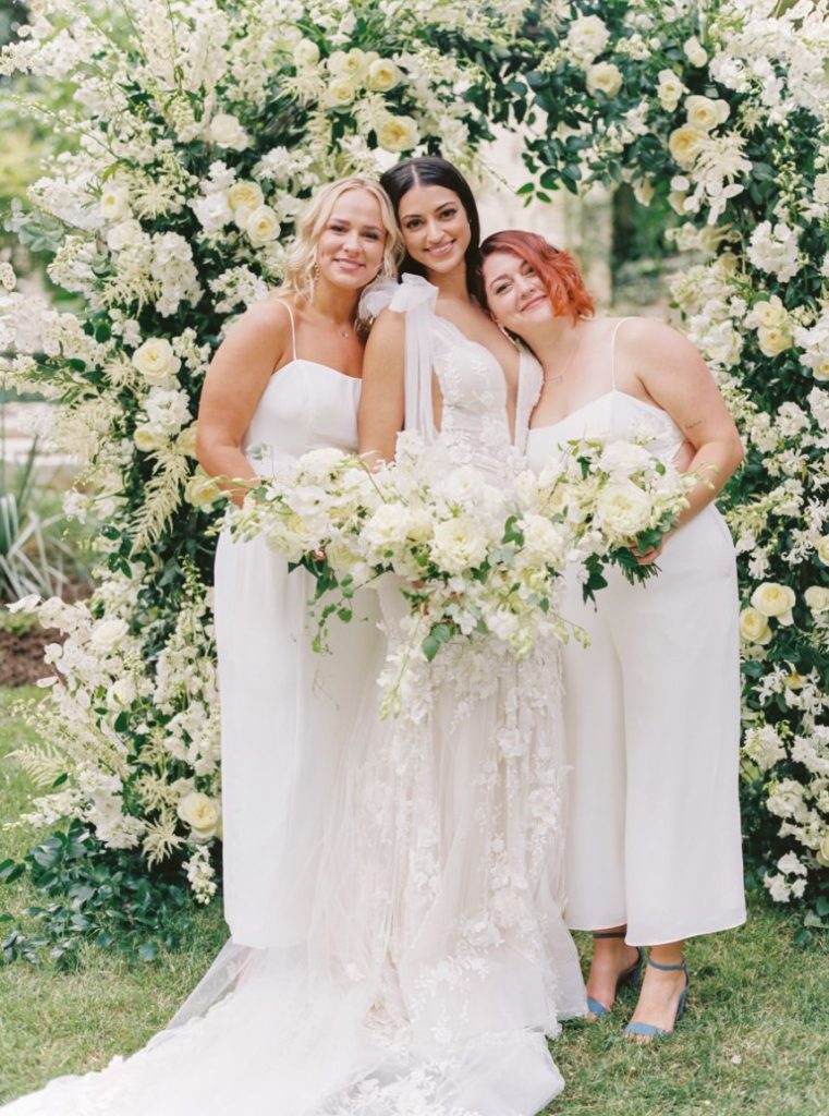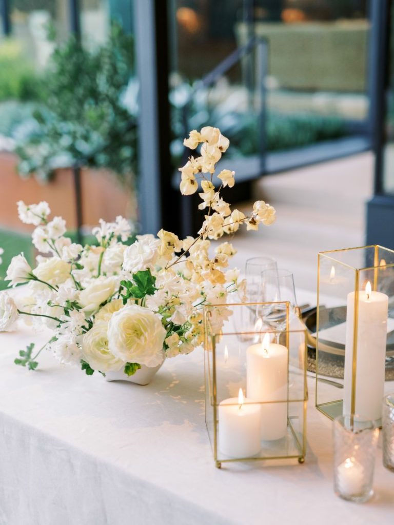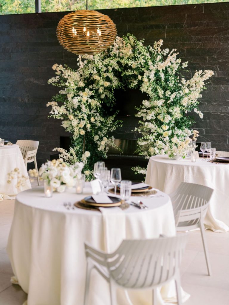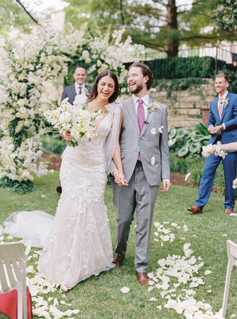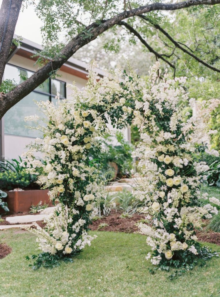 Christina and Andrew’s intimate backyard wedding might have been smaller than they had originally planned, but it was in no way lacking sheer elegance! When COVID-19 forced this couple to make the heartwrenching decision to postpone their wedding, they started thinking outside the box. The talented photographers at Feather & Twine captured all the dreamiest moments from this effortlessly chic day where modern design and gorgeous florals steal the show. Wedding guests who were able to attend stayed nearby in the luxe accommodations of Fairmont Austin. Bride Christina says their decision to scale down wasn’t an easy one to make, but they came to find it was the right choice for them. “Our wedding was originally scheduled for April 4, 2020,” Christina said. “We made the decision to cancel due to COVID-19 about three weeks out. It was heartbreaking – We were so close. Our original wedding was going to be lavish and big, about 180 guests.”