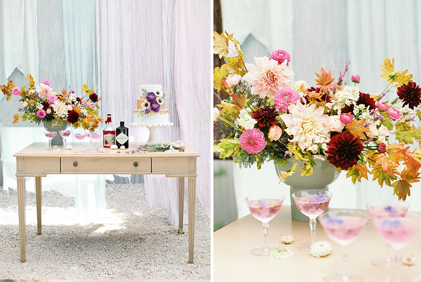 Pastel hand-dyed fabrics, hand painted cakes and floral cocktails make up this dreamy styled shoot by Bird Dog Wedding with Coco Paloma Desserts. We are loving the touches of autumn mixed in with fresh spring florals and pastel decor. The gourmet cakes truly capture this shoot’s romantic and whimsical vibe through their pops of color and texture further inspiring this enchanting floral dreamland shot by Kristen Kilpatrick Photography. Enjoy!