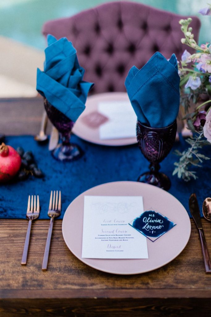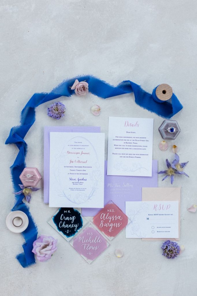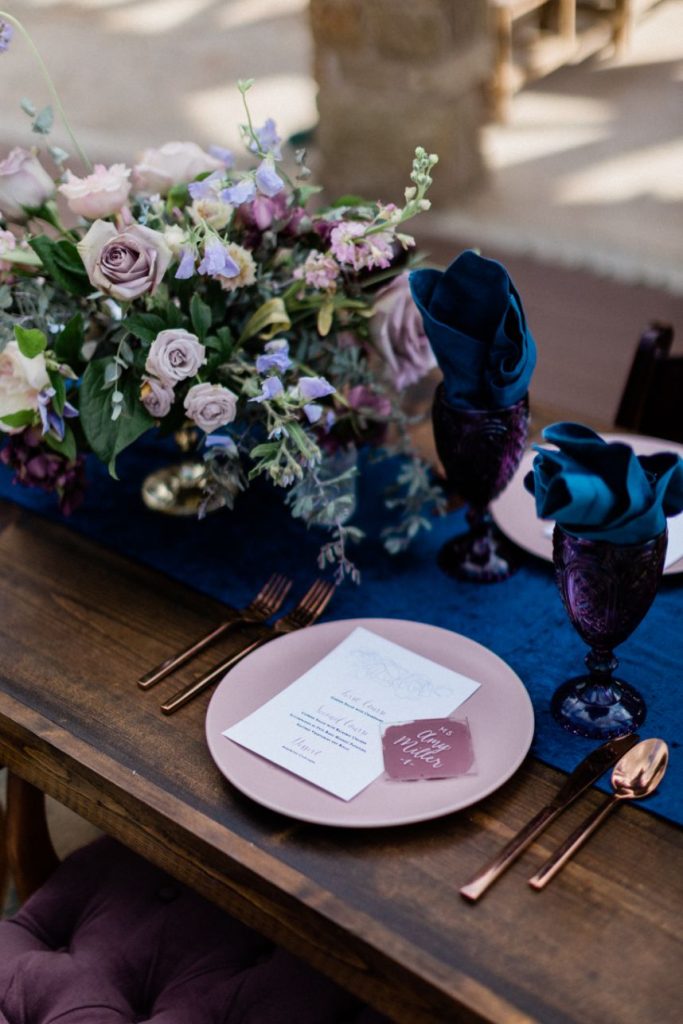 From the photographer, Dreamy Elk Photography & Design, LLC: “There were two separate shoots that were photographed that day (the garden dream blue and purple romantic set up, then the dry design pink set up). All of the vendors participated in both, with the exception of the models.”