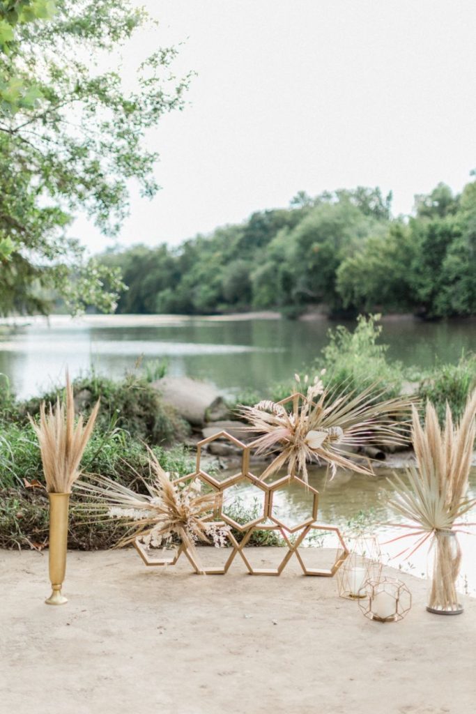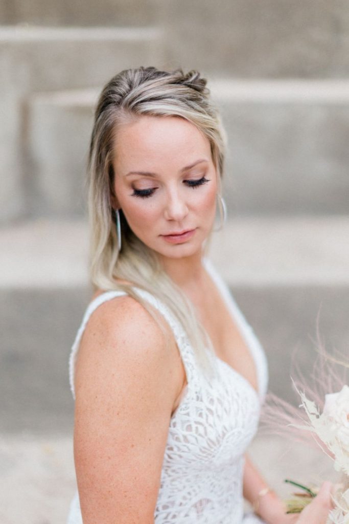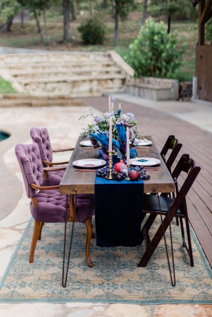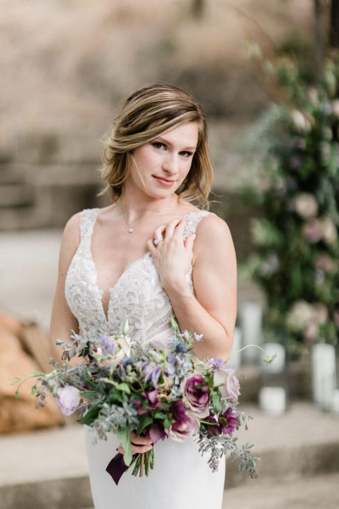 This styled shoot is a two-for-one special in terms of outdoor wedding inspiration! Captured by Dreamy Elk Photography & Design, LLC, two differing scenes play out in picturesque outdoor settings where romance is in no short supply. Planner Touch of Whimsy styles each distinctly – one an elegant, moody garden dream and the other, an organic, beachy and soft soiree. The first manifests in regal blue and purple palette throughout a romantic tablescape of crushed velvet, amethyst glass chalices, rose gold flatware and adorable acrylic place settings. The artists at Makeup ATX keep it light and fresh with our first model’s coral lip and her waves are swept back in the most lovely low bridal pony. Big beautiful blooms in cool tones made for the perfect centerpiece and altar installation florals with plentiful greenery that made each seem as though they are growing from where they stand. Shifting to the second scene we could have sworn was set seaside, a wooden geometric altar and dried grasses add effortless romance to a modern, casual wedding. In taste with this part of the day, Touch of Whimsy strayed from fresh florals, instead incorporating a chic, bohemian dry design that showcased eye-catching palm fronds, bunny tails and sunbleached fern. Peachy shades remind us of hot summer days and the natural textures of this tablescape capture all the attention. Makeup ATX styled our second bride half-up with a big, boho braid showing off her gorgeous face, made up in a soft bridal glam featuring neutral shadows, a nude lid and darker outer crease. We love how different each part of this outdoor wedding inspiration is. No matter your taste, there’s something to love whether within its romantic garden dream or the organic, beachy scene. Cheers!