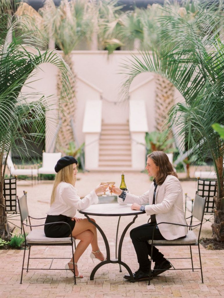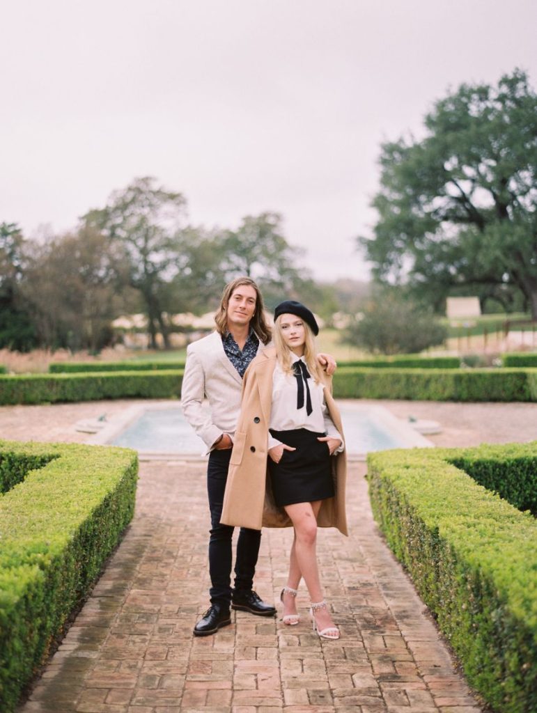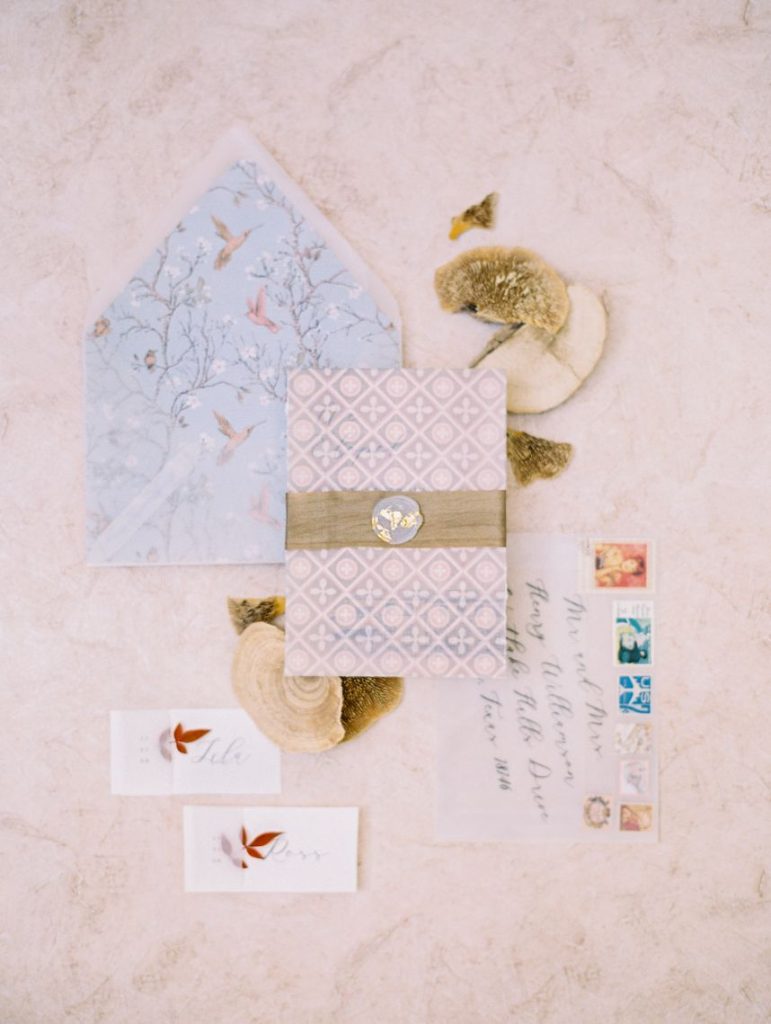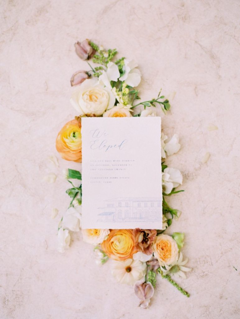 From the planner, Lauren Field Design: “An elopement weekend set amongst the Texan meets European heritage of The Commodore Perry Estate, inspired by the sophisticated architecture of the estate and the nostalgia of leisurely travel. It was important for us to capture the experience of the signature spaces and landscape of the property and transport the couple to a one-of-a-kind oasis with a European vibe. Tones of blue, shades of peach/terra cotta, taupe, and golden ivory are surrounded by grand old-world architecture and finely crafted details.”