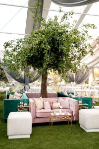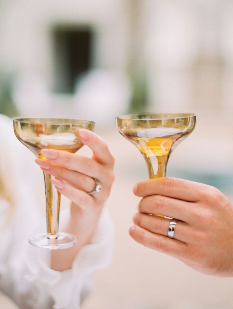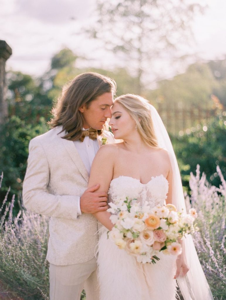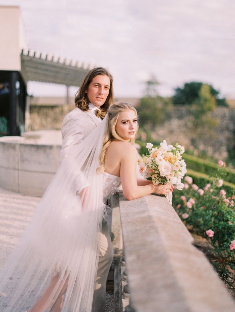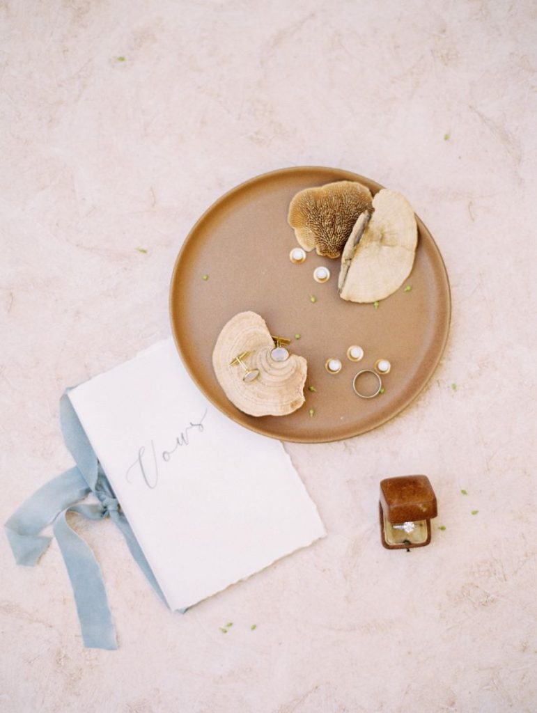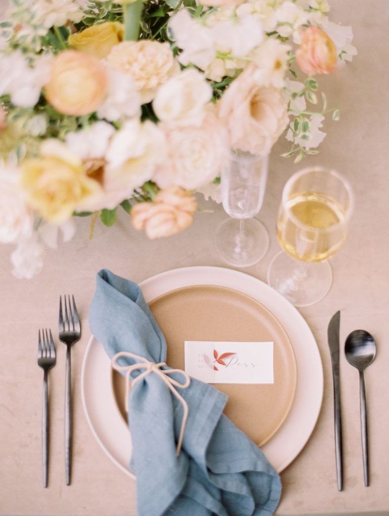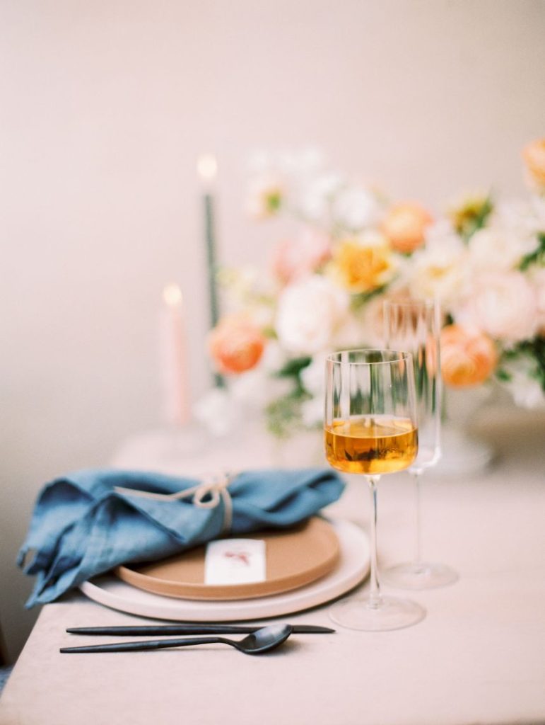 As if straight out of a storybook, we are enchanted by this earth toned wedding inspiration featuring modern European design and chic vintage-inspired details planned by Lauren Field Design! Playing out in ocean blue hues and earth tones alike, these minimalist styled scenes come to life set with vintage-inspired décor like rattan chairs and mod amber wine glasses while a few fresh floral installations from Remi + Gold bring romance to the faux affair. This bride looks stunningly chic in a knee-length feather bridal gown from Serendipity Bridal featuring a strapless neckline and a dazzling cathedral-length veil. Our stylish couple models in romantic scenes around the venue where we could absolutely mistake them for royalty, and their wedding follows suit with al fresco tablescapes adorned with light and airy linens from Premiere Events that set each space with such tasteful touches – all captured by the talented Kristin La Voie Photography. Read on for a note from the planner about the vision and design behind this earth toned wedding inspiration. Cheers!