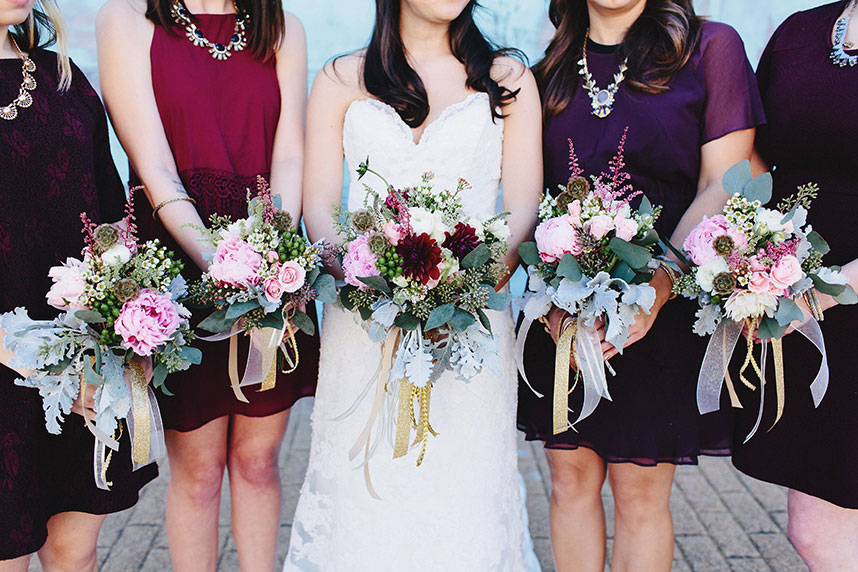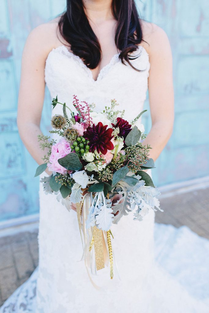 ECLECTIC ELEGANCE: Jamie wanted a wedding that was eclectic and elegant, but still very true to the couple’s style. She wanted their family to feel like they were in an extension of their home enjoying an evening with them as they exchanged vows. Above all, they wanted their wedding to glorify God and celebrate His faithfulness in their lives. They chose hues of blush, maroon, green, navy and beige to complete the look.