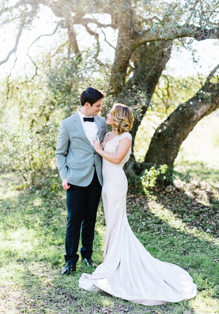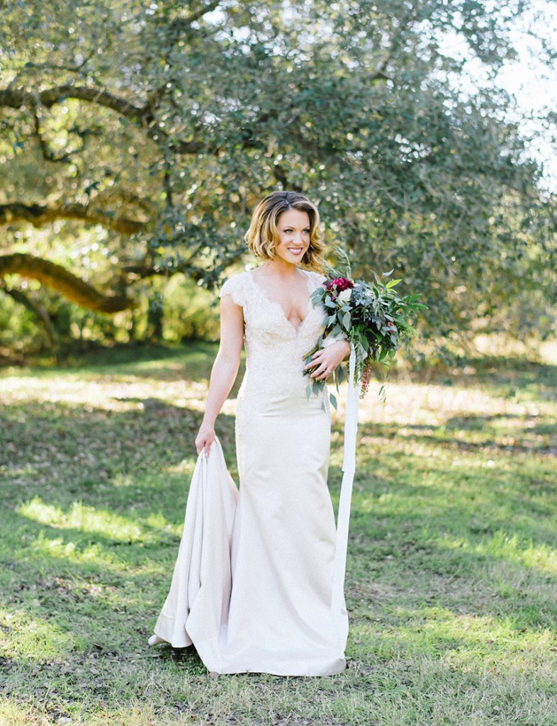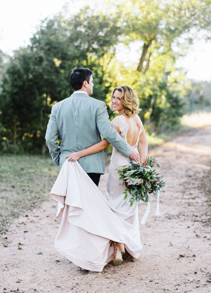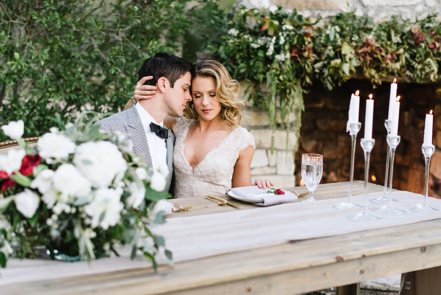 The simplicity and elegant details in this al fresco styled shoot at Pecan Springs Ranch are everything! Sarah Goss Photography and Al Gawlik Photography perfectly captured the natural beauty of this Austin wedding venue and the soft romanticism in each lovely detail. The model bride stuns in an exquisite Lazaro gown with delicate lace appliqués and a plunging neckline from Serendipity Bridal. Her look is complete with a short and sassy curled bob and flawless makeup by Weddings by Celissa Rae. Enjoy the gorgeous photos above!