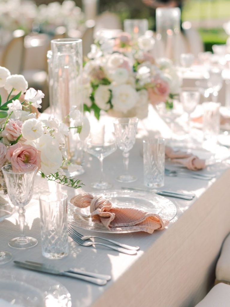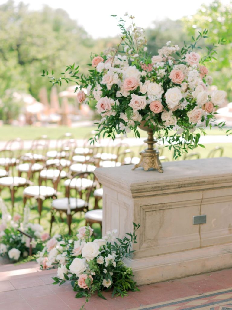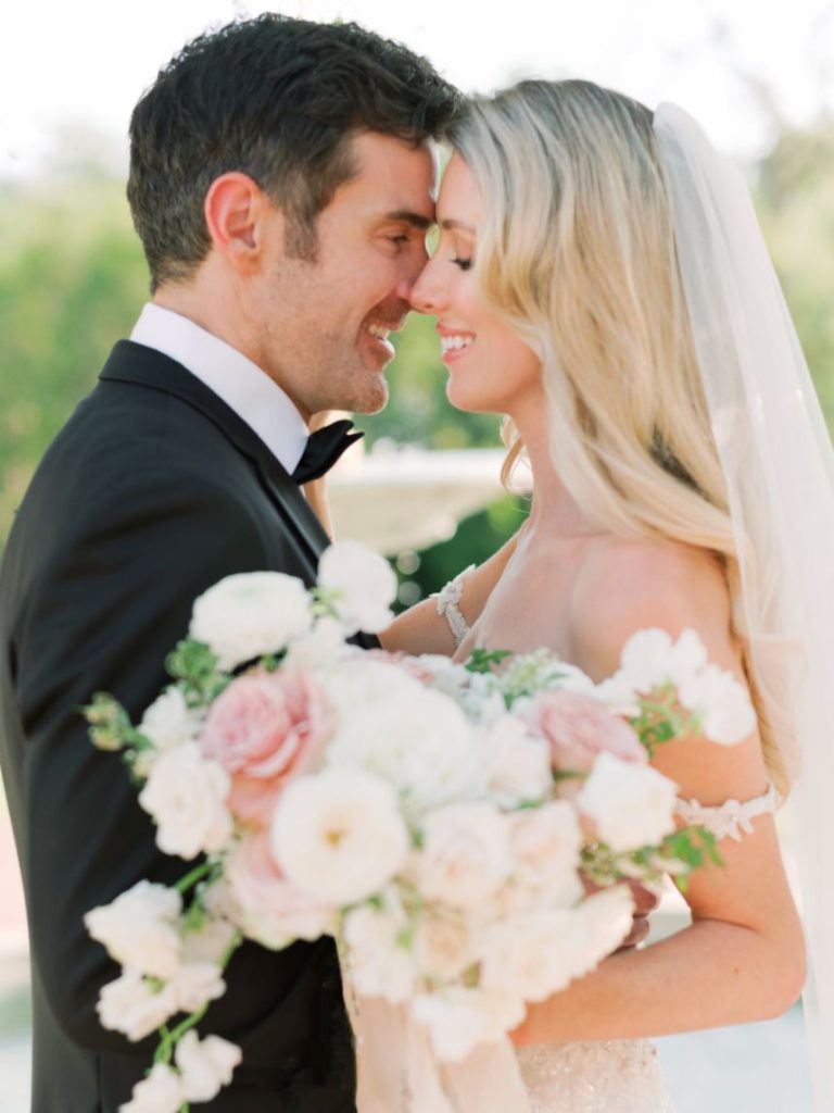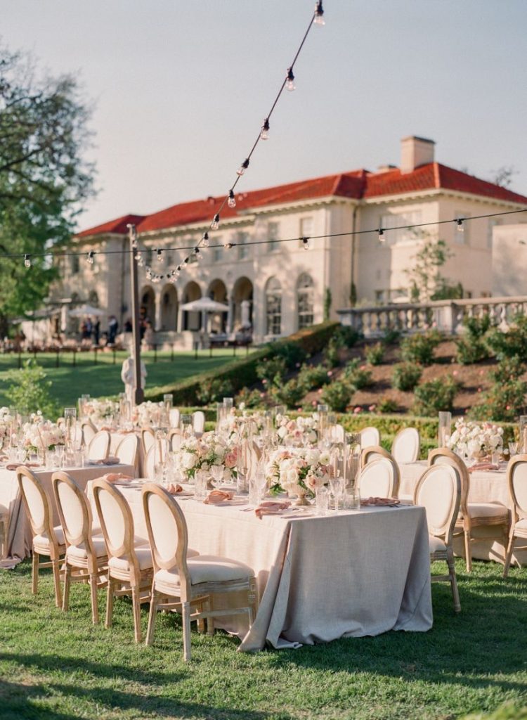 Pop the Dom Pérignon for Jenny and Tyson’s French garden wedding. This lush dreamscape at Commodore Perry Estate brought all the French garden vibes that completely captivated our hearts. The sweet couple met, as Jenny describes, “in true millennial fashion” on Hinge. After one date, the two hit it off, and Jenny became completely smitten by Tyson and his love to travel. Tyson proposed to Jenny on Christmas Eve with the help of the couple’s Australian Shepherd puppy, who wore a bandana that said, “Will you marry me?”. We love any Christmas Eve engagement, especially ones that involve a cute pup! Of course, Jenny said “yes,” and the couple began planning their dream French garden wedding. Jenny and Tyson quietly eloped seven months prior to their big day in Aspen, Colorado. Since Tyson always dreamed of eloping in the mountains, and Jenny had always dreamed of a small and traditional garden wedding, they decided to do both. As a result, they both got the wedding of their dreams! Pearl Events Austin helped Jenny execute her French garden dream with a dusty rose color palette under the Austin sky. It is important to bring attention to the most amazing floral arch with over 1,000 roses from Stems Floral Design + Event Styling. The florals in Jenny and Tyson’s wedding are nothing short of a fairytale. The pink and white rose bundles paired well with the French-inspired decor and rentals from Whim Hospitality. Sophie Epton Photography captured all the light, love, and French elegance in Jenny and Tyson’s special day. Keep scrolling to see more of this French garden wedding and a special note from the bride!