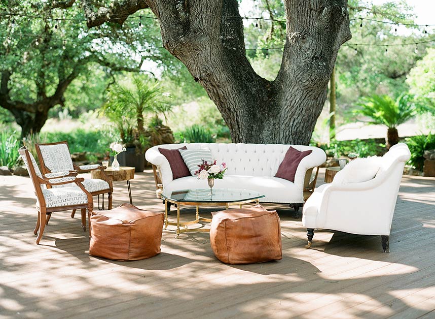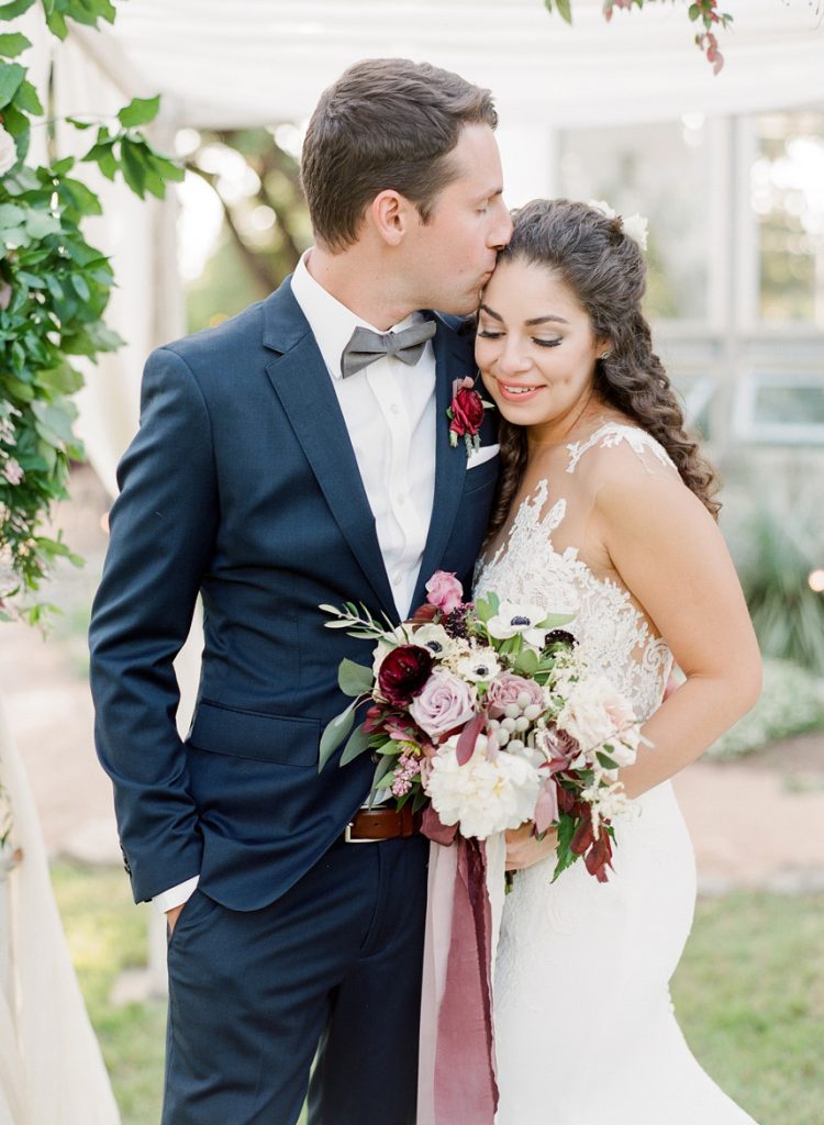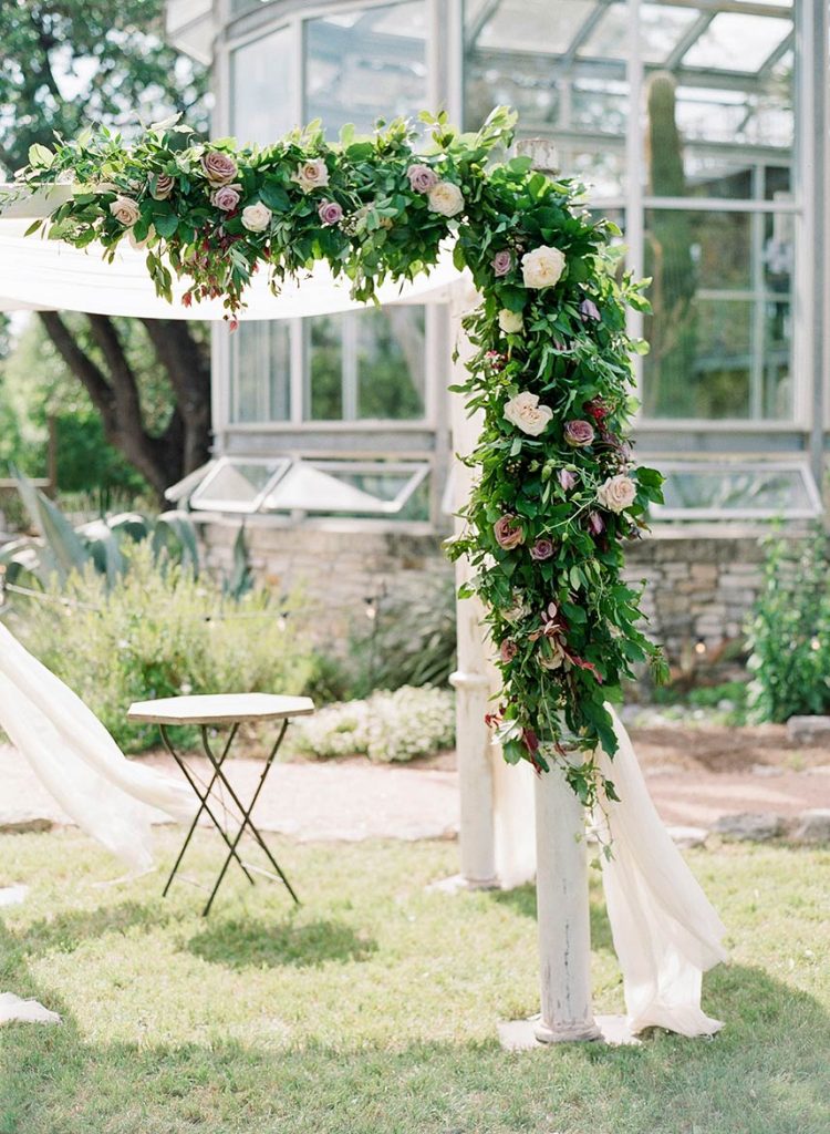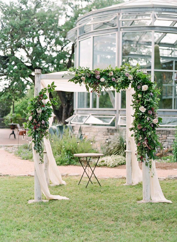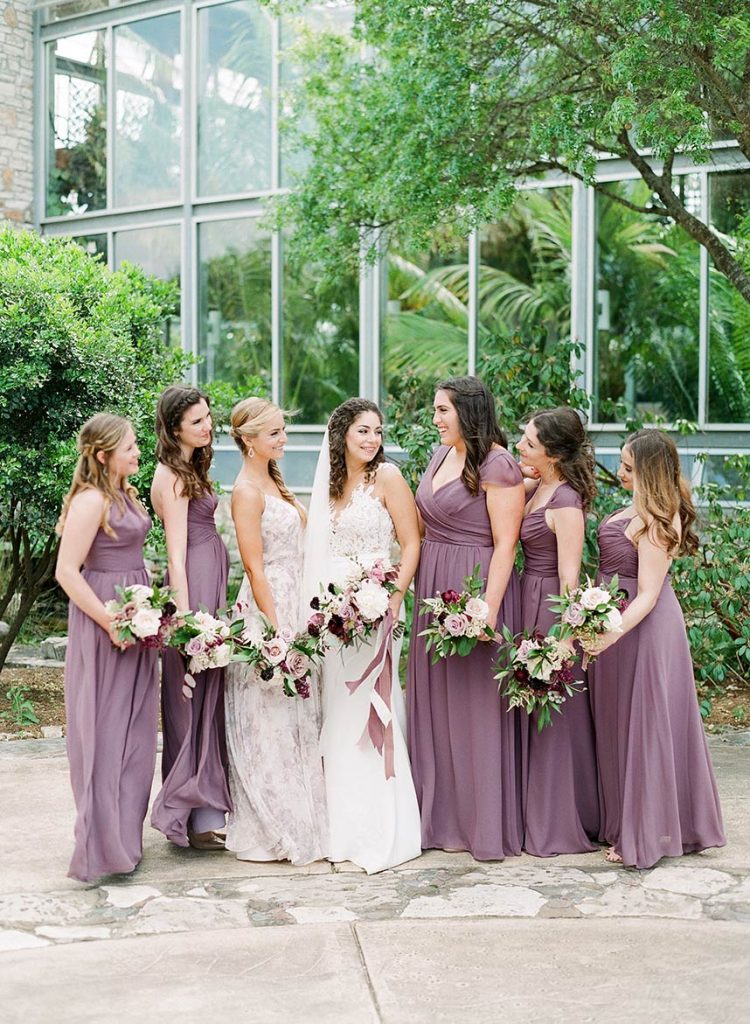 Showcasing the best of Austin and the surrounding Hill Country’s earthy, natural aesthetic, Wild Sky Events helped bring newlyweds Sarah and Jonathan’s vision to life in an elegant greenhouse wedding! Sourcing decor elements centered around wood pieces, Loot Vintage Rentals, Whim Hospitality and Premiere Events helped create a dreamy al fresco dining and lounge setting with boho chic cushioned wooden chairs plus a long wooden table, and an inviting tufted couch perfect to lounge in between dances under the stars! Adding the most special touch to her wedding day, Gypsy Floral & Events perfectly captured the bride’s floral ideals in a romantic color scheme of lilac and merlot, infusing the sweet blooms in everything from the bouquets to cake embellishments. The naked cake by 2tarts Bakery stood as a star on it’s own, serving as the most perfectly sweet centerpiece. We’re head over heels for this couple’s dreamy outdoor wedding!