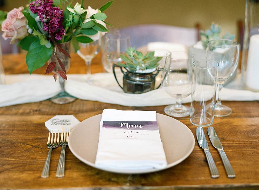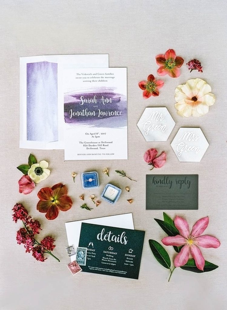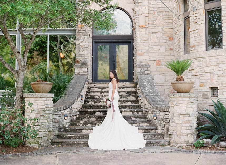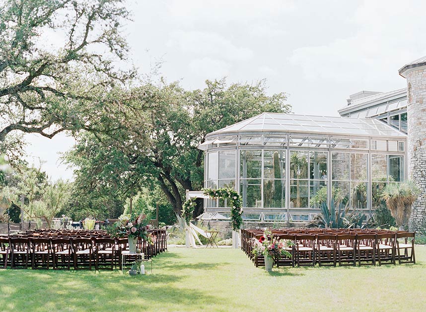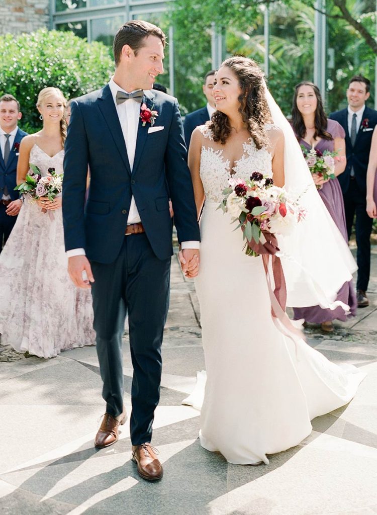 Showcasing the best of Austin and the surrounding Hill Country’s earthy, natural aesthetic, Wild Sky Events helped bring newlyweds Sarah and Jonathan’s vision to life in an elegant greenhouse wedding! Sourcing decor elements centered around wood pieces, Loot Vintage Rentals, Whim Hospitality and Premiere Events helped create a dreamy al fresco dining and lounge setting with boho chic cushioned wooden chairs plus a long wooden table, and an inviting tufted couch perfect to lounge in between dances under the stars! Adding the most special touch to her wedding day, Gypsy Floral & Events perfectly captured the bride’s floral ideals in a romantic color scheme of lilac and merlot, infusing the sweet blooms in everything from the bouquets to cake embellishments. The naked cake by 2tarts Bakery stood as a star on it’s own, serving as the most perfectly sweet centerpiece. We’re head over heels for this couple’s dreamy outdoor wedding!
