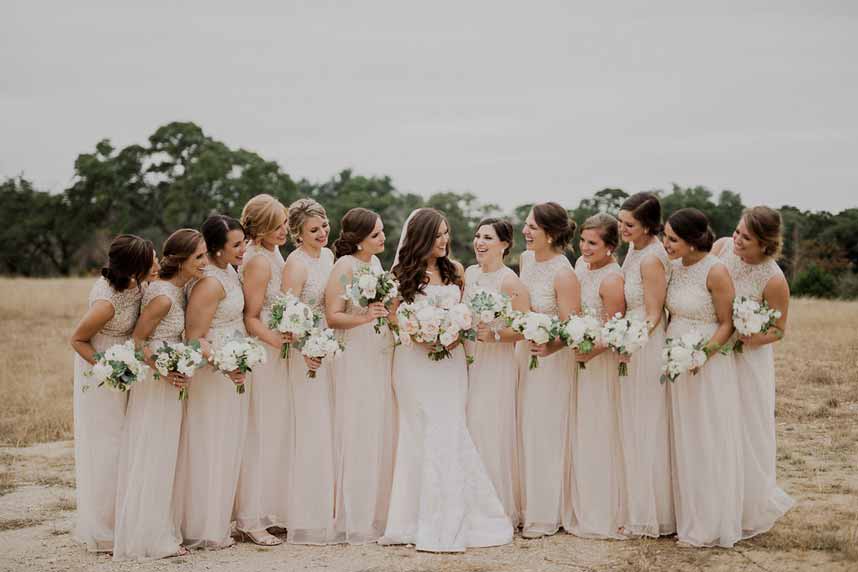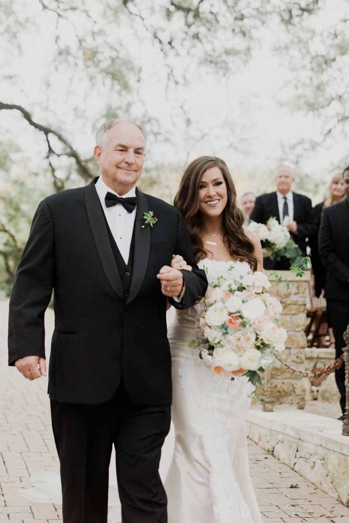 Sydney and William’s elegant outdoor Austin wedding at Camp Lucy includes everything from a gorgeous daytime ceremony lush with green trees to a stunning sparkler send-off, all captured by Captivating Weddings. We can’t get enough of the beautiful floral by Whim Hospitality found everywhere from the bouquets and centerpieces to the flower girl’s headband. The venue’s natural beauty was amplified by the light pink, green and ivory wedding details. This elegant outdoor wedding is the epitome of Hill Country charm!
