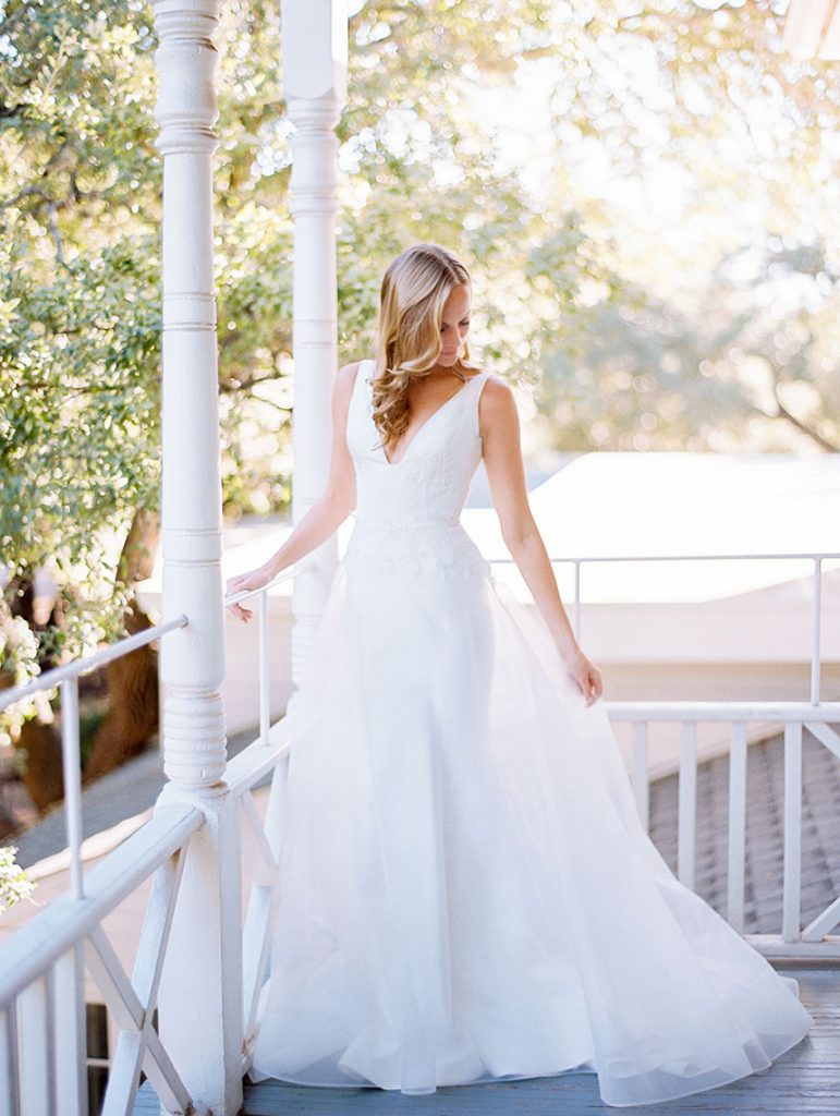 This elegant outdoor white wedding was oh-so-romantic with it’s dreamy details and sunset “I do’s!” Kristin La Voie Photography captured every aspect of Lauren Izard and Peter Salatich’s big day absolutely flawlessly, and we are loving getting to take a peek into these intimate moments. The happy couple started off their wedding weekend with a bang by celebrating with loved ones at Brazos Hall for a rehearsal dinner, catered by Crave Catering, as well as a bridesmaids’ luncheon at the Fairmont Austin. Moving into the wedding day, the bride and groom both had relaxing mornings spent golfing and chilling by the pool with their separate sides of the wedding party, until it was time for their romantic outdoor ceremony. The simplistic elegance of the couple’s altar is truly show-stopping with the luscious white florals from Westbank Flower Market and beautiful white chairs for their guests to watch them tie-the-knot. After a ceremony that was officiated by the bride’s aunt, the couple enjoyed the rest of the evening with entertainment from Royal Dukes Band and a mouth-watering cake from Sweet Treets Bakery! We know you’ll love all the dreamy details of the Salatich’s big day!