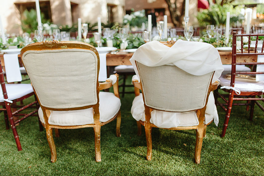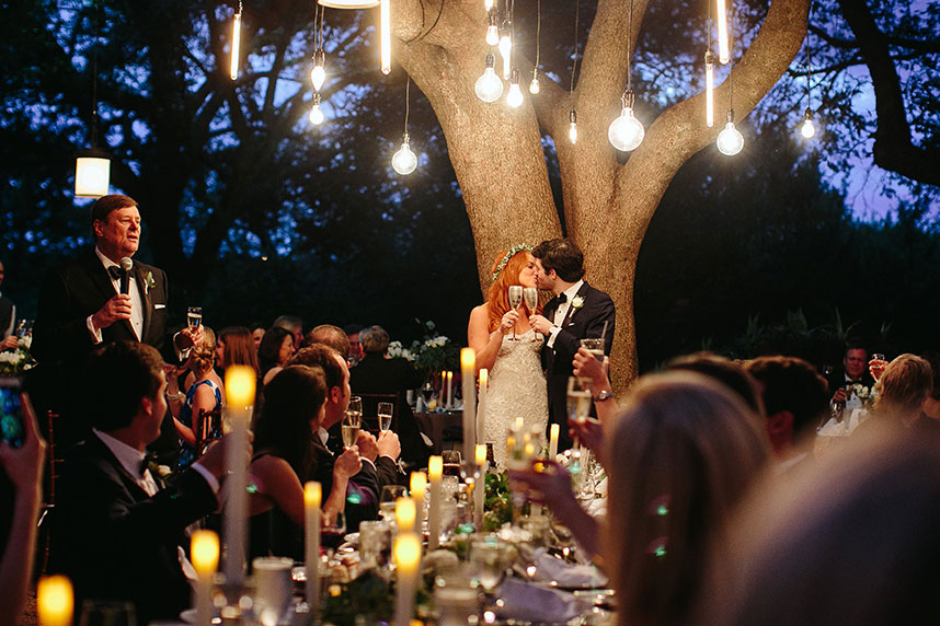 One of the important elements of the ceremony for the couple was the incorporation of both of their religious backgrounds. The union included traditions from Liz’s Episcopalian upbringing and Jason’s Jewish heritage. There were two officiants who each led unique wedding rituals before the blended vows were exchanged. After Jason broke the glass toward the end of the ceremony, he kissed his stunning bride, and the reception got underway.