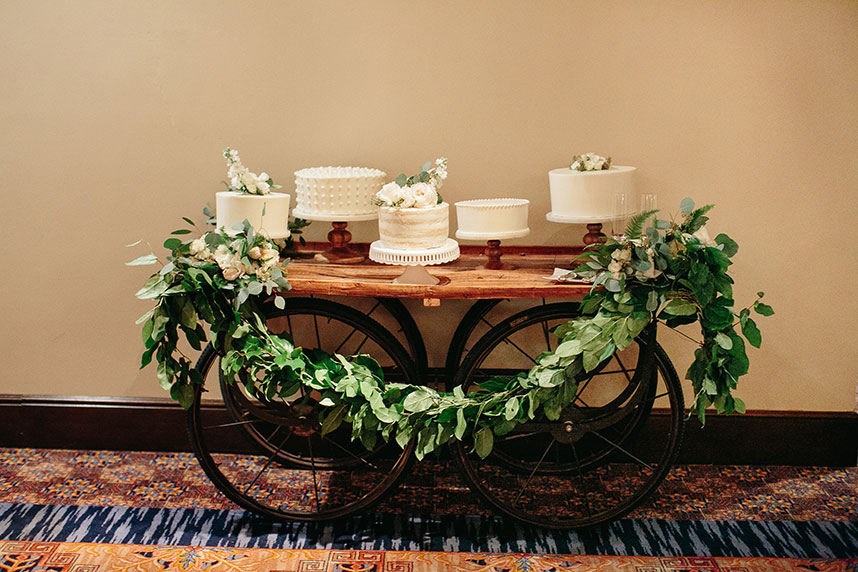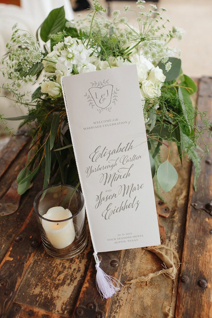 In planning their wedding, the couple first discussed the location. Liz grew up in Austin, so ultimately they decided it would be the perfect place with its central location and beautiful options for venues. “Austin has a huge part of my heart and having the chance to get married right downtown on Town Lake was so special,” Liz says. The bride-to-be spent hours with a cup of coffee in hand perusing Pinterest boards looking for inspiration. She knew she wanted a garden party theme, and hired Becky Navarro at Pearl Events to help bring her vision to reality. Liz, a graphic designer, decided to make her wedding a “branding project.” It would be a lovely picture of the couple and their personalities. When the couple decided on the Four Seasons as the venue, they knew they wanted the greenery to be the draw. Liz loved that the hotel was right in the middle of everything in the city.
