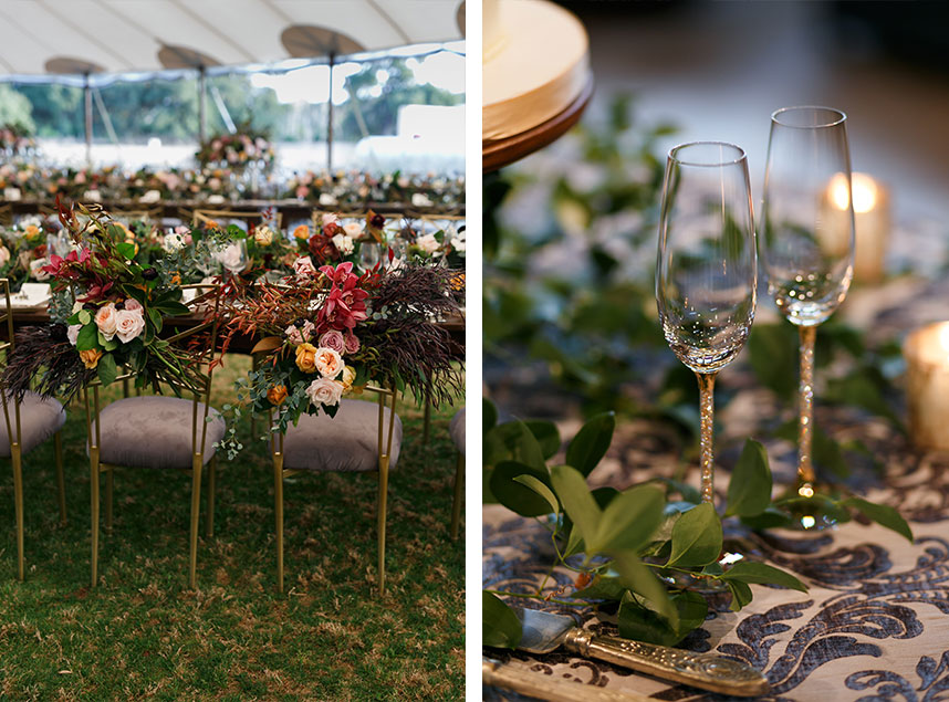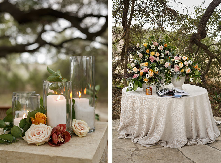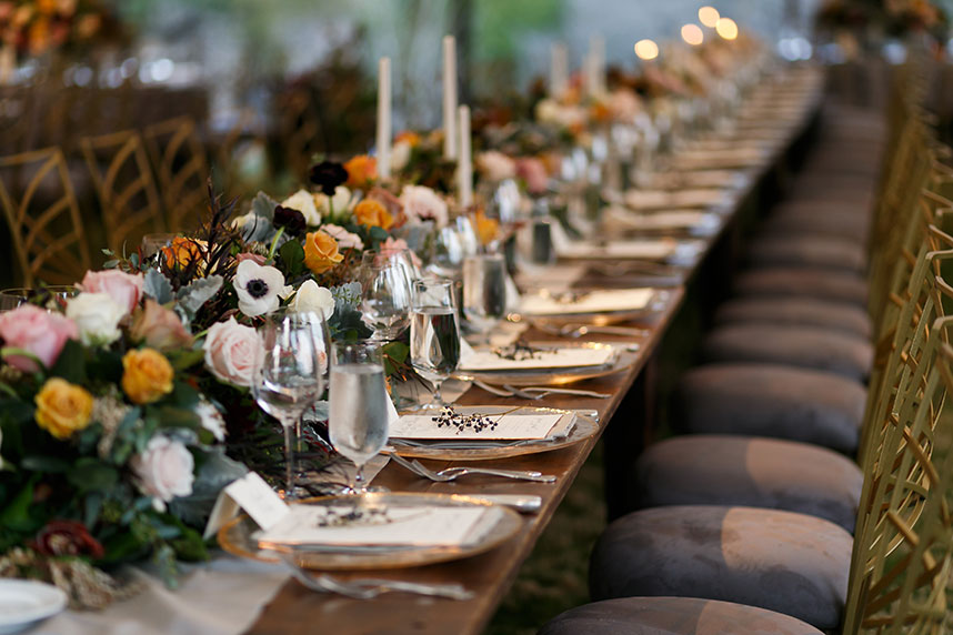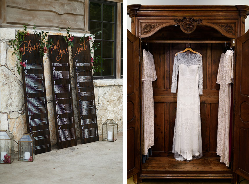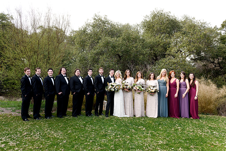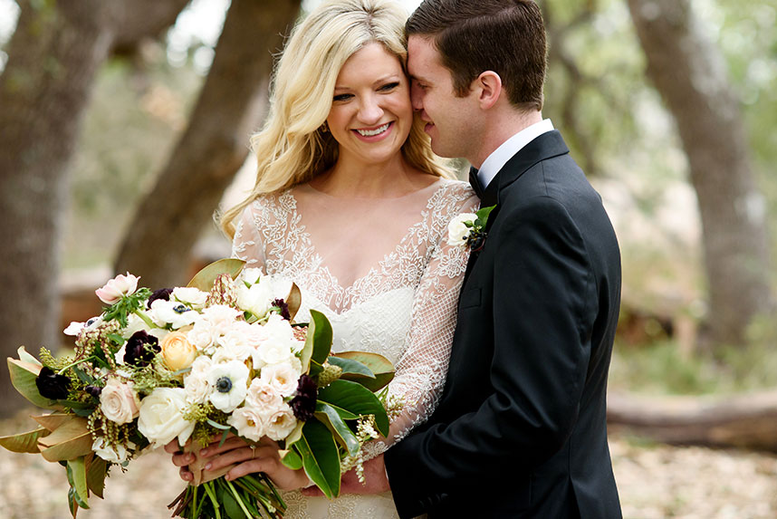 Destined for a California wedding, it’s to no surprise that Missy and Drew instantly fell for the ethereal forest feel of Camp Lucy and quickly switched locales! Brock + Co Events perfectly captured the natural charm of the picturesque Hill Country wedding venue by setting the scene with a candle lit altar complemented by dangling tree lights for the ceremony, and wood tables dressed with delicate foliage adorned by place settings at the reception, all from Whim Hospitality. The bride made a stunning entrance and continued on to dance the night away in a lace long-sleeve gown by Monique Lhuillier from Julian Gold. After a night celebrating on the dance floor, the newlyweds cut a grand five-tier, floral topped wedding cake from Simon Lee Bakery. Cheers to an enchanted evening!