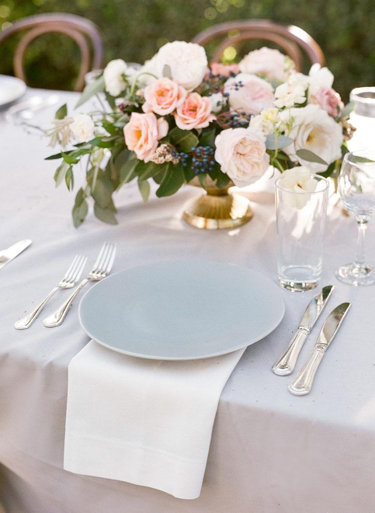 “We incorporated hues of dusty blue and lots of greenery to add to the existing beautiful white space. The ceremony was outside near the pond and the reception was inside, so we had the best of both worlds!”