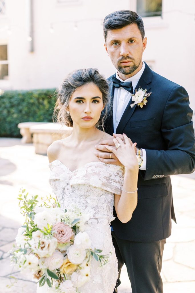 From the photographer, The Crakes: “When we all came together, we had the mission to show Austin, Texas, that you can have your dream ‘destination’ wedding right here in the city. The luxury feel, the timeless photos, and details that will last forever. Our color palette and details came from the inspiration of European cities, as well as the venue. Muted pinks, neutrals and torn paper to represent the architecture of Europe’s cities…all while we had a harpist playing some tunes that reminded me of walking around the streets of London. The real-life couple allowed each vendor to be represented perfectly, accompanied by the amazing jewels of Nicole Mera, the beautiful design of florals by Lovelily Flowers and hair and makeup by Think Brink Beauty – all based here in the Austin area.”