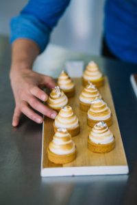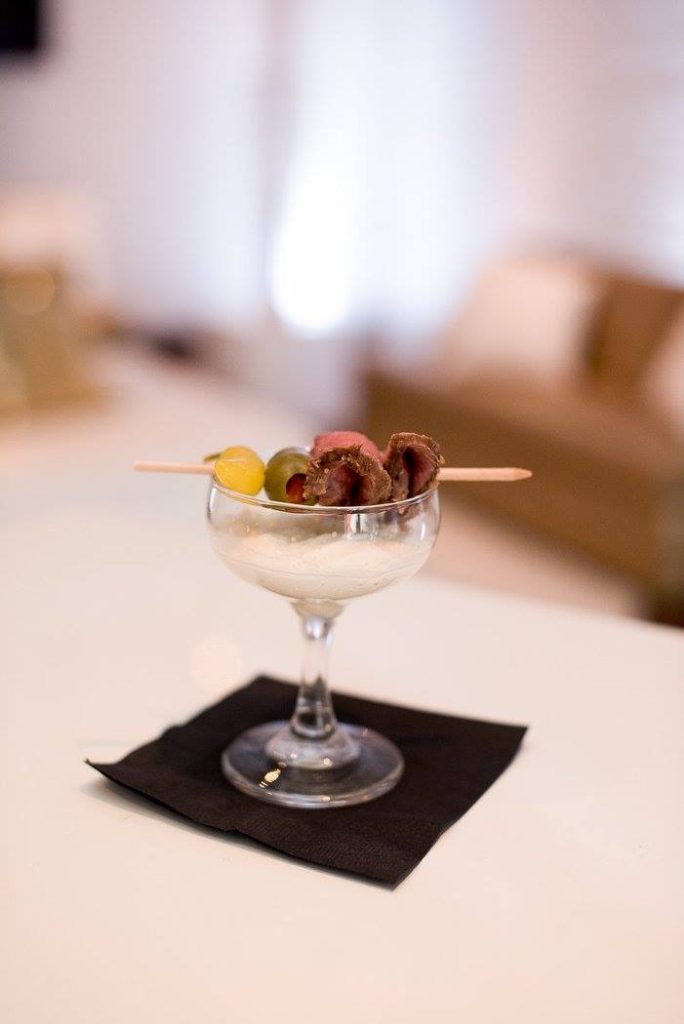 Alfred’s Catering brings a touch of elegance and flair with their “Steak and Martini” appetizer—tender horseradish-crusted beef medallions topped with a bold dirty gin martini foam. A perfect bite that’s both sophisticated and unforgettable!