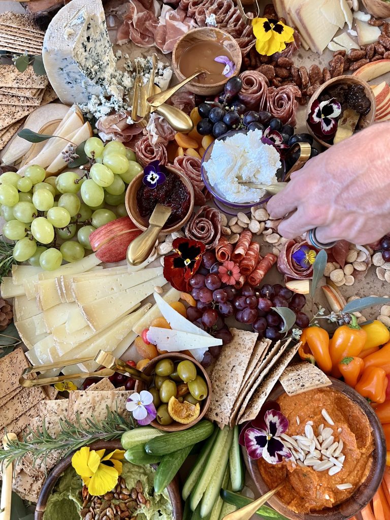 The Happy Grazer, known for her fabulous charcuterie spreads, takes it up a notch with a handheld version, perfect for guests to snack and mingle!