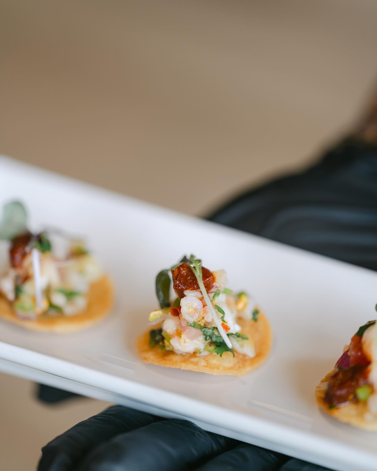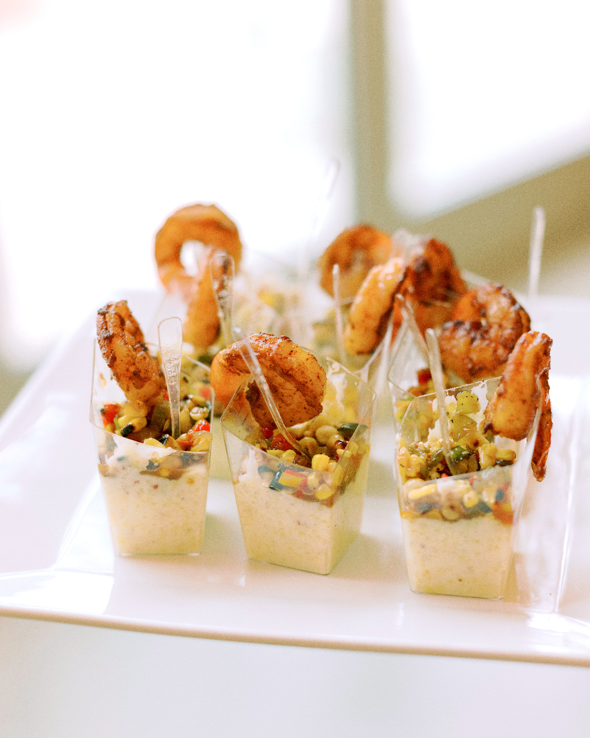 SoHo Catering & Consulting serves up Southern comfort with a twist—Blackened Shrimp and Grits topped with a vibrant corn relish. It’s a bold, flavorful bite that perfectly balances spice and creamy goodness!