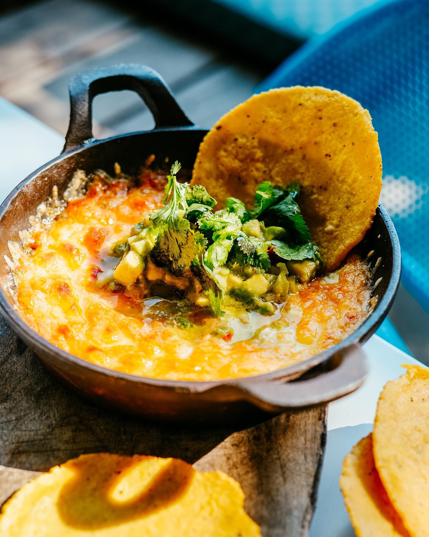 El Alma knows how to bring the heat with their classic crowd-pleaser, a crispy tortilla chips topped with creamy guacamole, a dollop of tangy crema, and fresh pico de gallo.