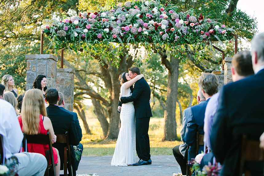 Take a peek at this gorgeous Austin wedding straight from the pages of the recent issue. Jessica and Brent were married outdoors at the beautiful Ma Maison beneath a grove of live oaks with an ornate stacked stone arc as the altar. The bride was absolutely exquisite in her Jenny Packham gown from Blush Bridal Lounge! The reception was perfect thanks to lighting from Altared Weddings and rentals from Whim Hospitality, and guests dined on delicious cuisine and cocktails from Royal Fig Catering. AL Gawlik Photography and Adam Gumbo Wedding Films were on hand to capture each and every detail of this sweet celebration. Cheers to Jessica and Brent!