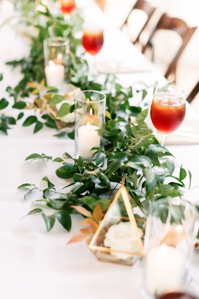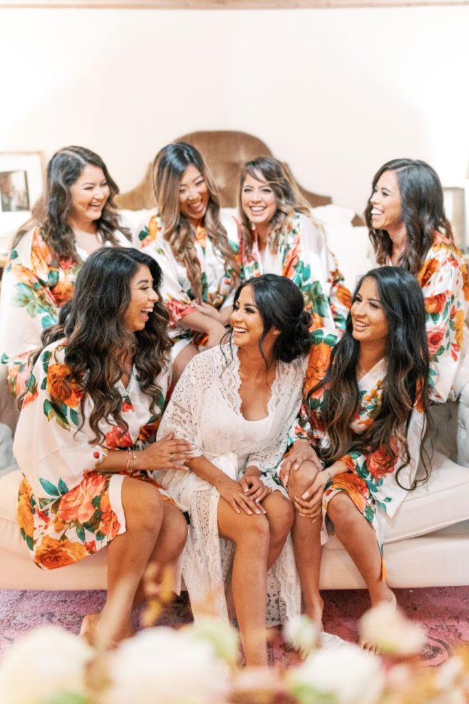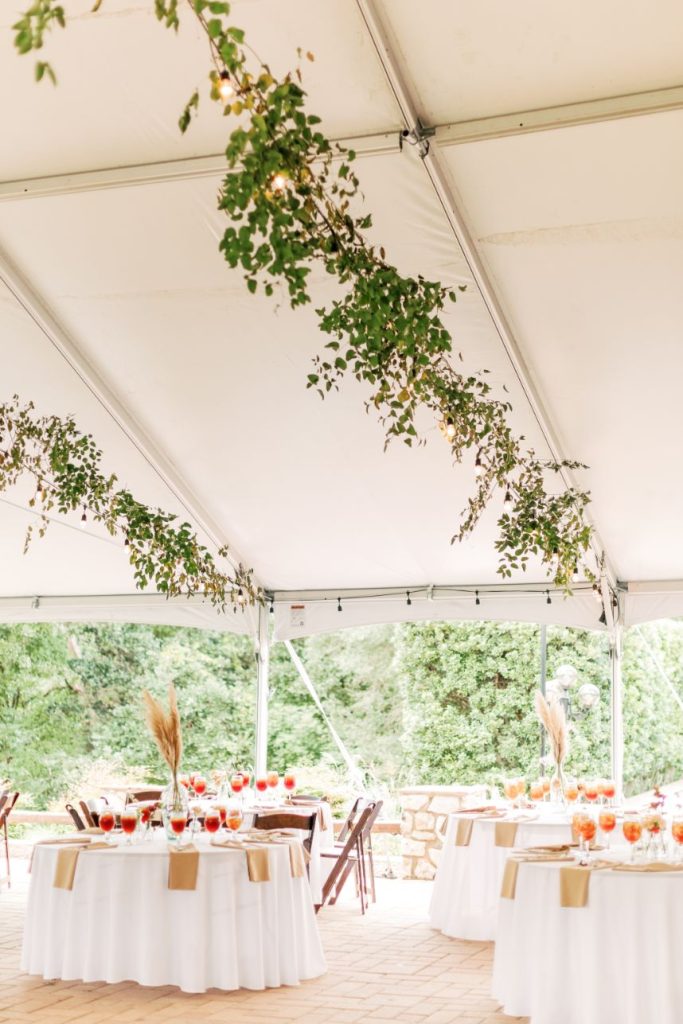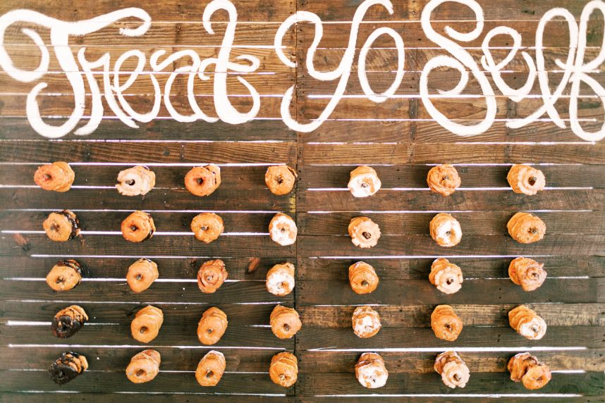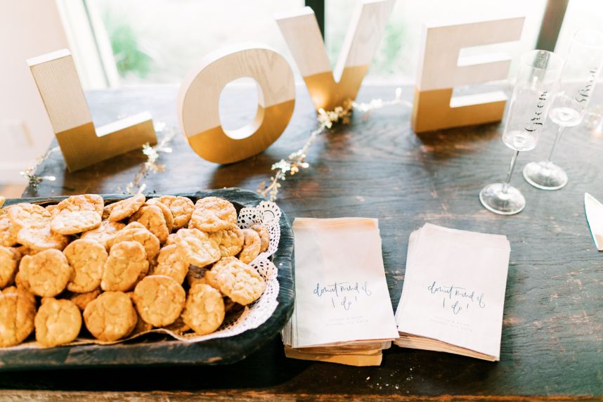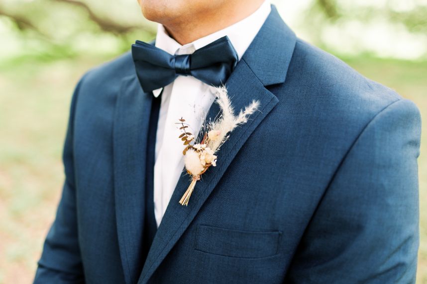 Jocelyn and Kaleb’s boho-chic wedding has all of us ready to say “I do.” Bride Jocelyn’s gorgeous bell-sleeve gown features a beautiful, flowing skirt, an open back, and a boat neckline with sheer mesh panel and appliqué floral designs all over – a stunning choice for a fall soiree, and easily the centerpiece of this incredible wedding celebration. With this wedding’s warm, organic palette, it’s easy to mix and match a variety of different textures and finishes — wood and wicker pair perfectly with pampas grass, fresh greenery and bohemian textiles. We love seeing earth tones in every corner, all captured by the oh-so-talented duo behind Feather & Twine. Cheers to Jocelyn and Kaleb!