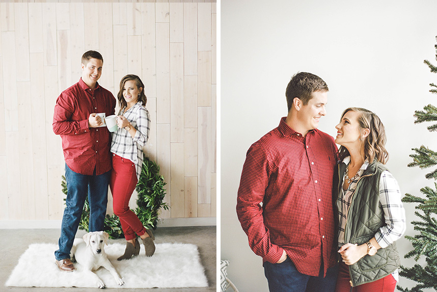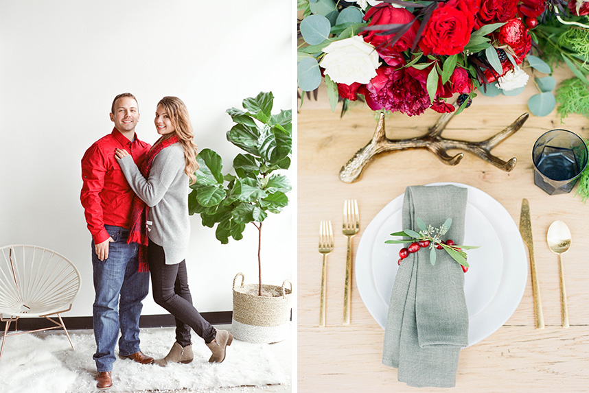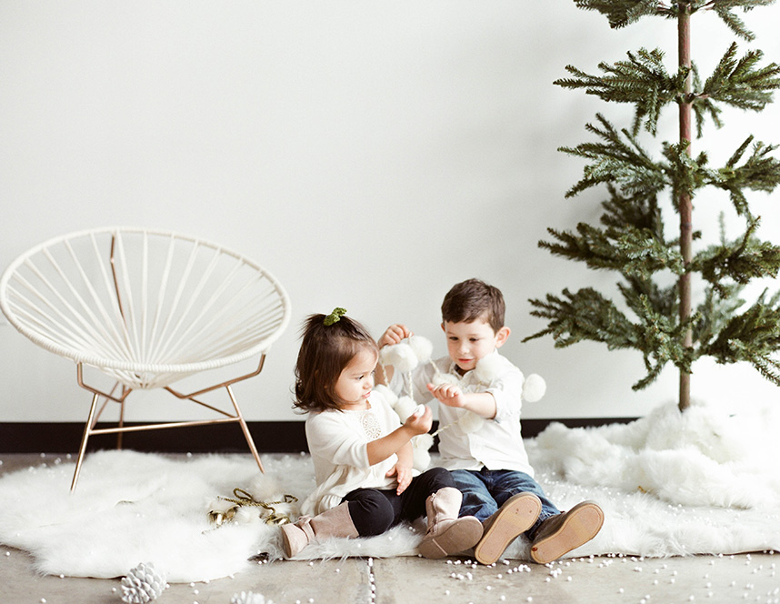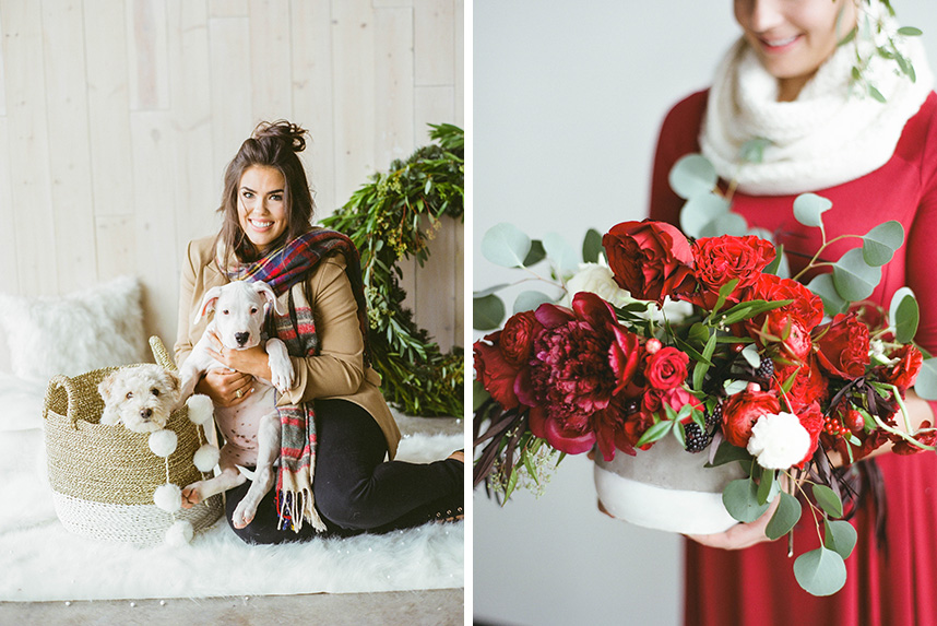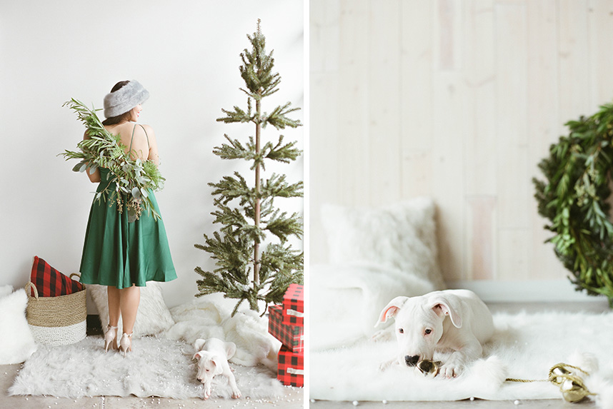 With the holiday season in full-swing, we’re so excited to share this adorably festive holiday shoot from Honey Gem Creative. A simple white background at the Peached Social House with plush fur throws and carpeting serve as the perfect blank canvas to customize the look of this wintery shoot. Classic seasonal favorites like sweet evergreens and holly berries, festive plaids, strings of jingle bells and of course, a little prop snow, add fun touches to make these photos treasurable season after season. Of course, what better way to include your favorite four-legged family members in the fun than with a sweet “Season’s Greetings” sent to all of your nearest and dearest! Whether for memories’ sake or for an annual card send-out, look no further than this darling shoot for your latest dose of happy holiday inspiration!