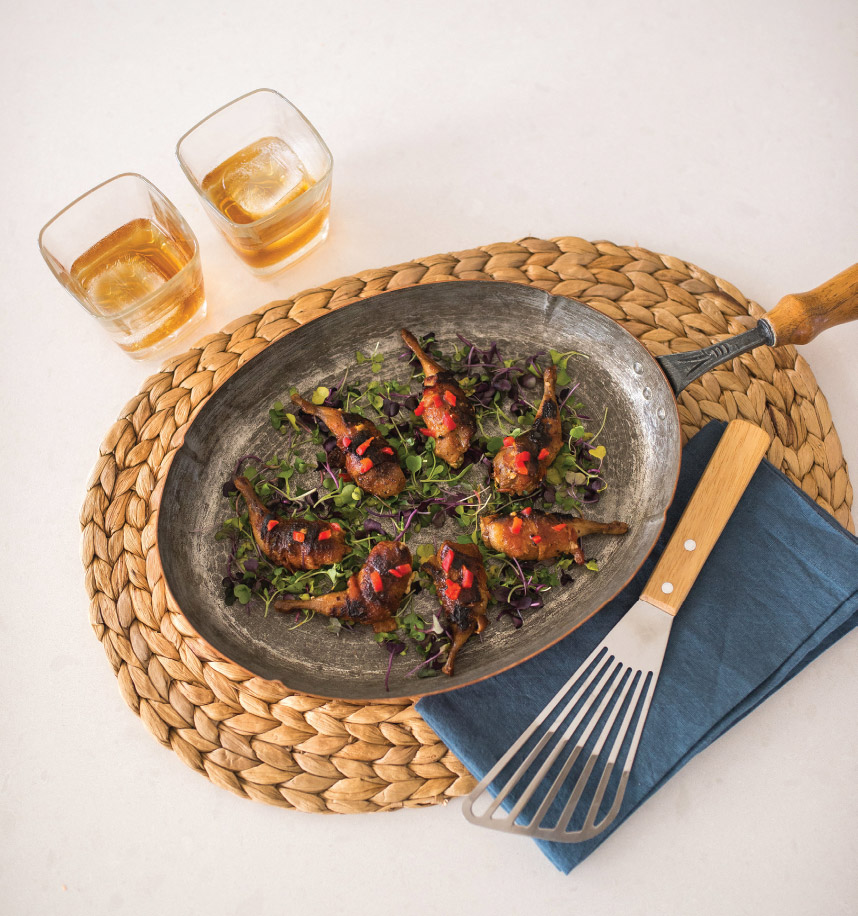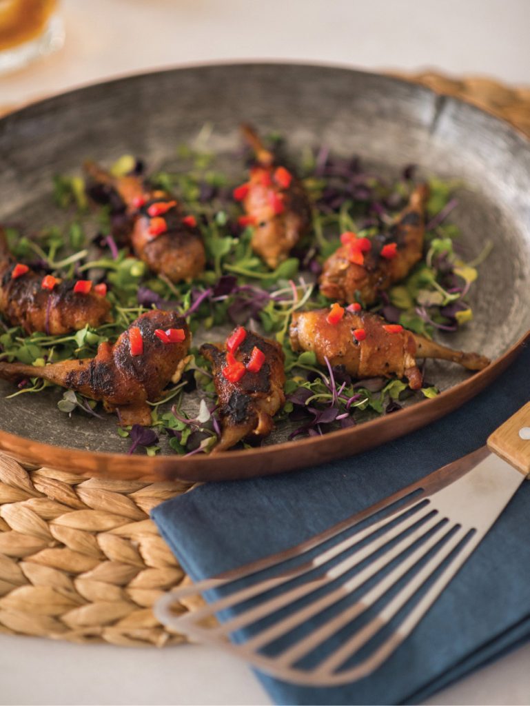 fare: BACON WRAPPED JALAPENO CREAM STUFFED QUAIL LEG