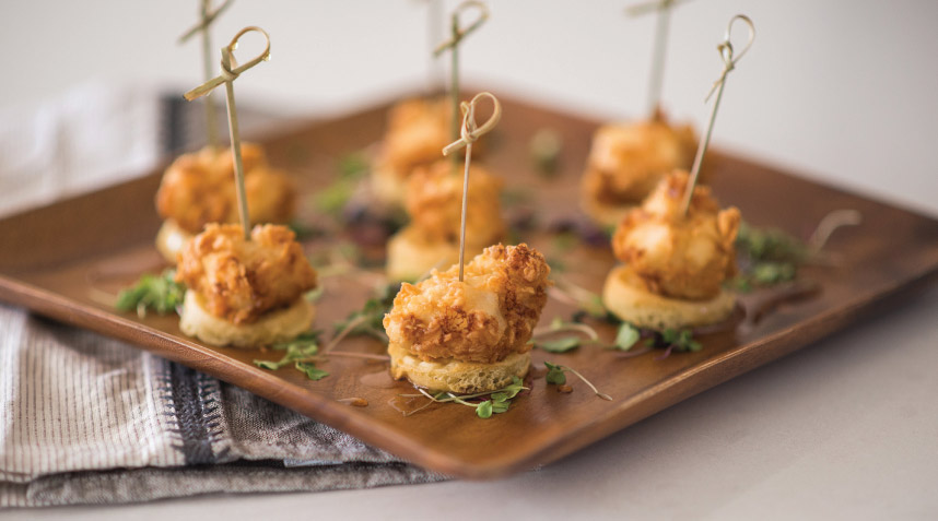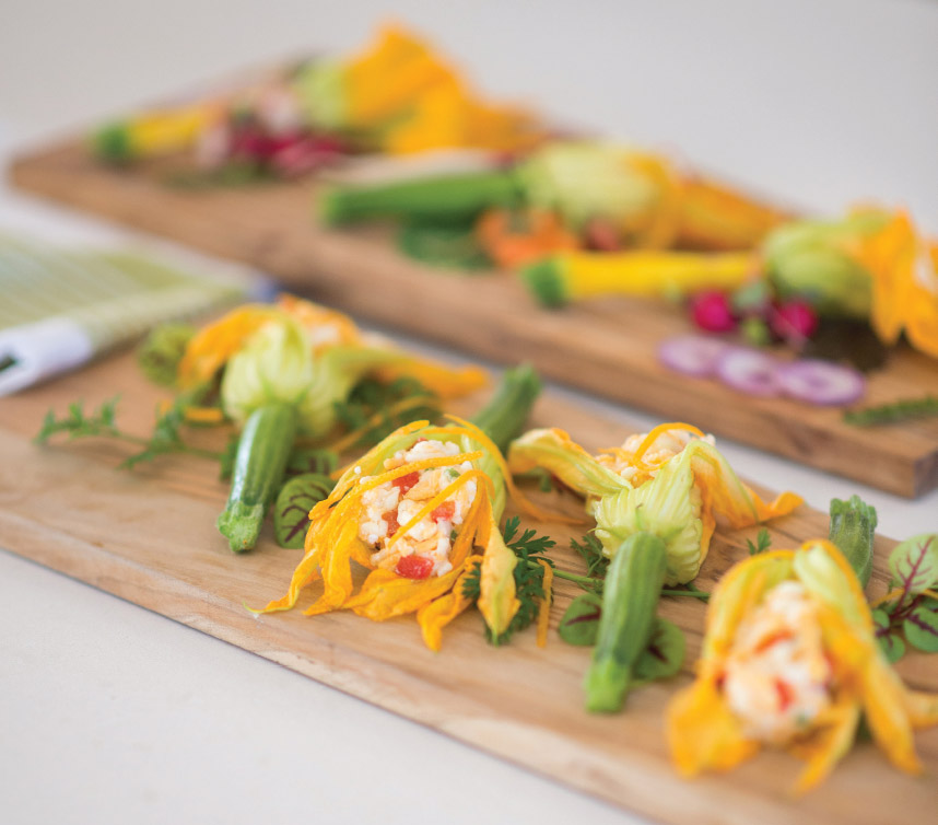 fare: PIMENTO CHEESE AND TOMATO STUFFED SQUASH BLOSSOMS