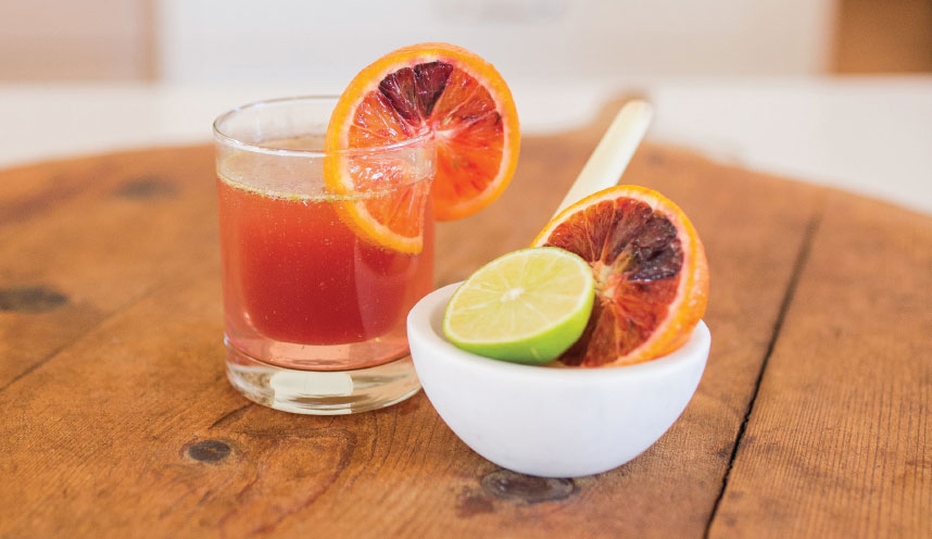 his cocktail: SHRUB ACTUALLY COCKTAIL GRAPEFRUIT JUICE, DEEP EDDY VODKA, PRICKLY PEAR SHRUB