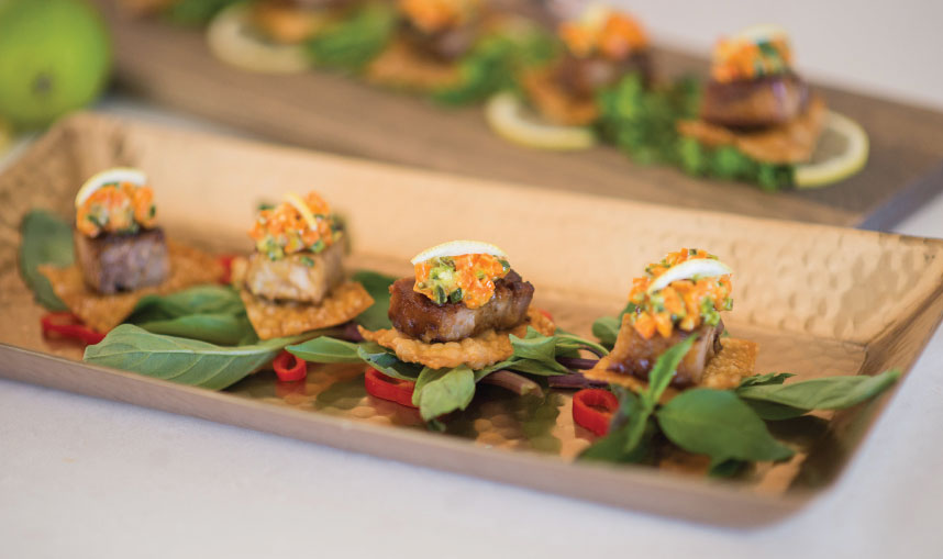 How lucky we are to have the best wedding caterers in Austin prepping food for our pages?! For our Spring/Summer issue, we asked these culinary creators to whip up their favorite drink and appetizer (fizz and fare if you will) pairings for our brides-to-be to peruse as they plan their wedding cuisine spreads. A. Wonderly Photography set to work capturing these bite-sized treats prepped at Nest Vacation Rentals Stepping Rock, and we couldn’t be happier with how her photos turned out! Scroll down to see all the yumminess for yourself. Cheers!