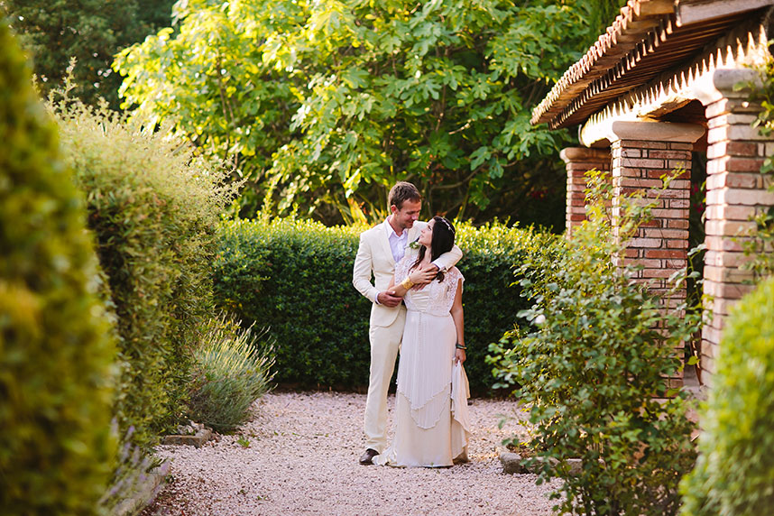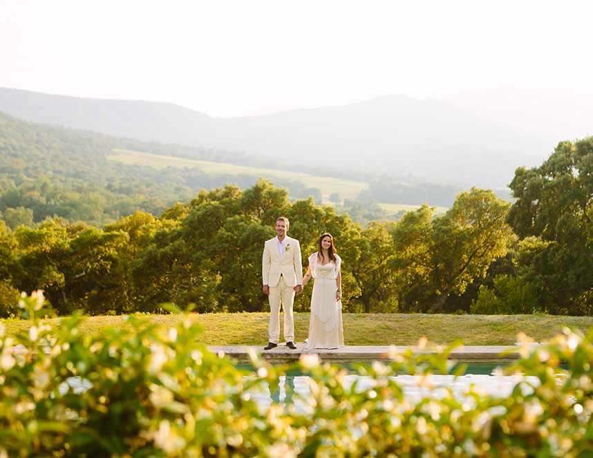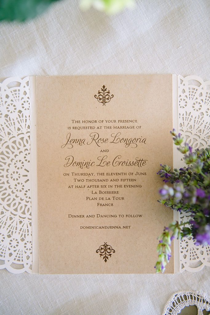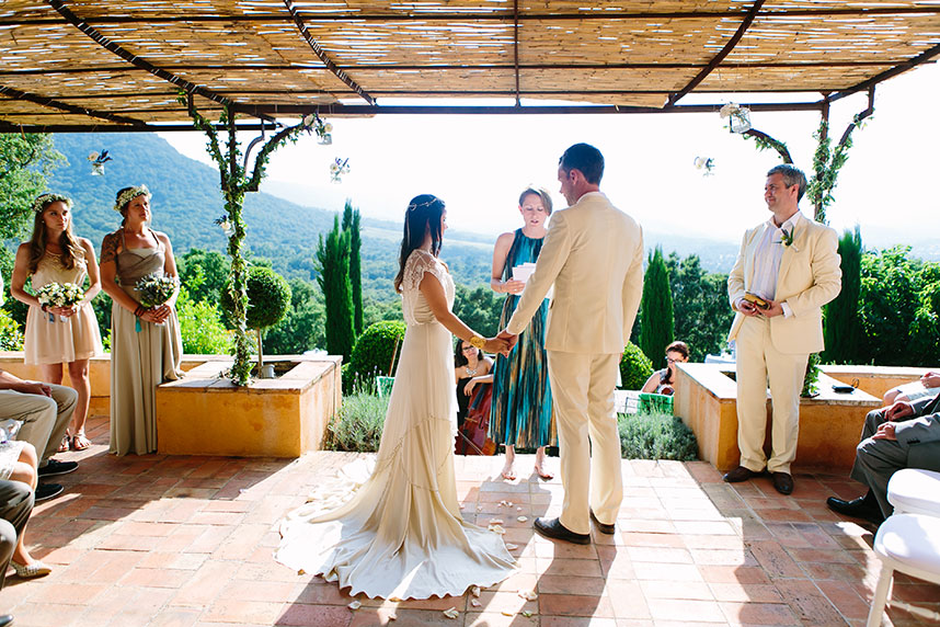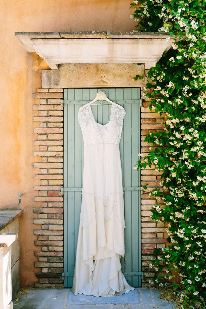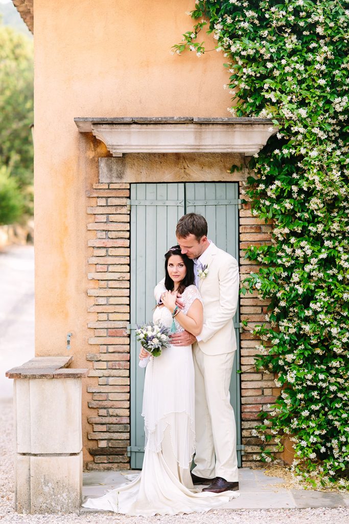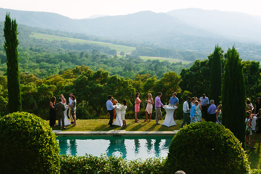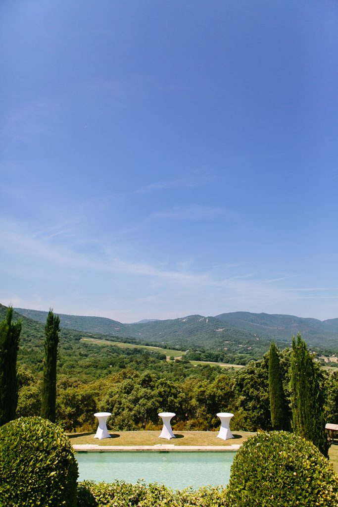 THE SETTING: The couple had a destination wedding at Plan-de-la-Tour in France. The venue was the first villa the couple looked at, and after seeing the views of the Provencal countryside from the patio, they were sold. The venue space was very intimate, which was perfect for their 59 guests. It also had many bedrooms and was large enough for many of their family members to stay the entire week.