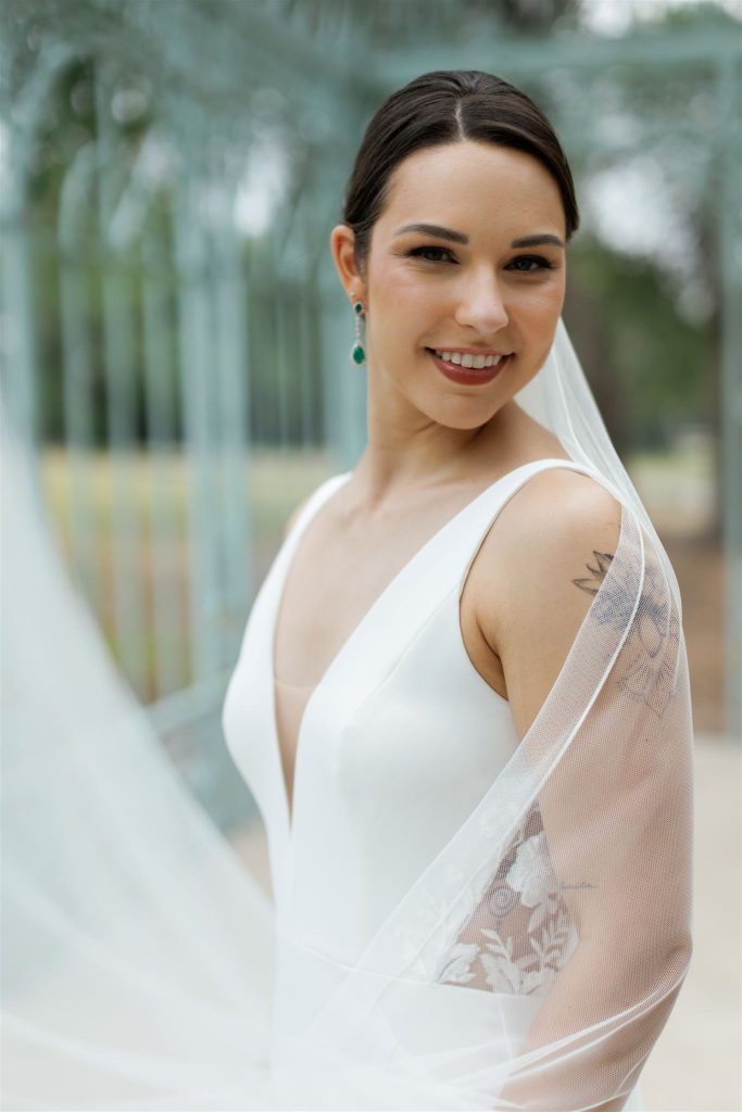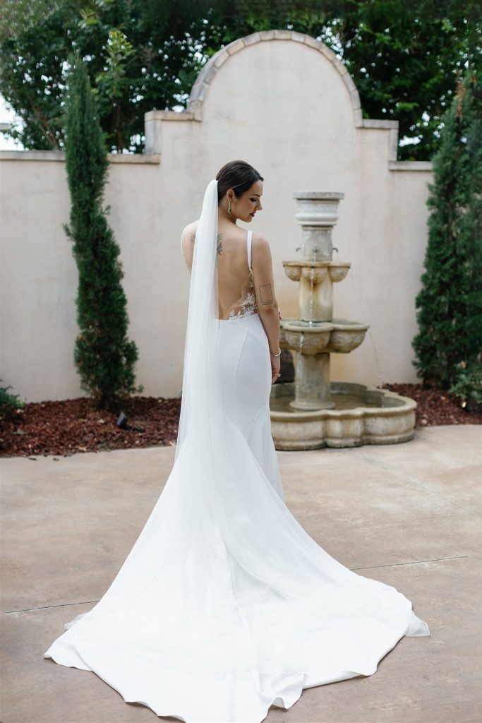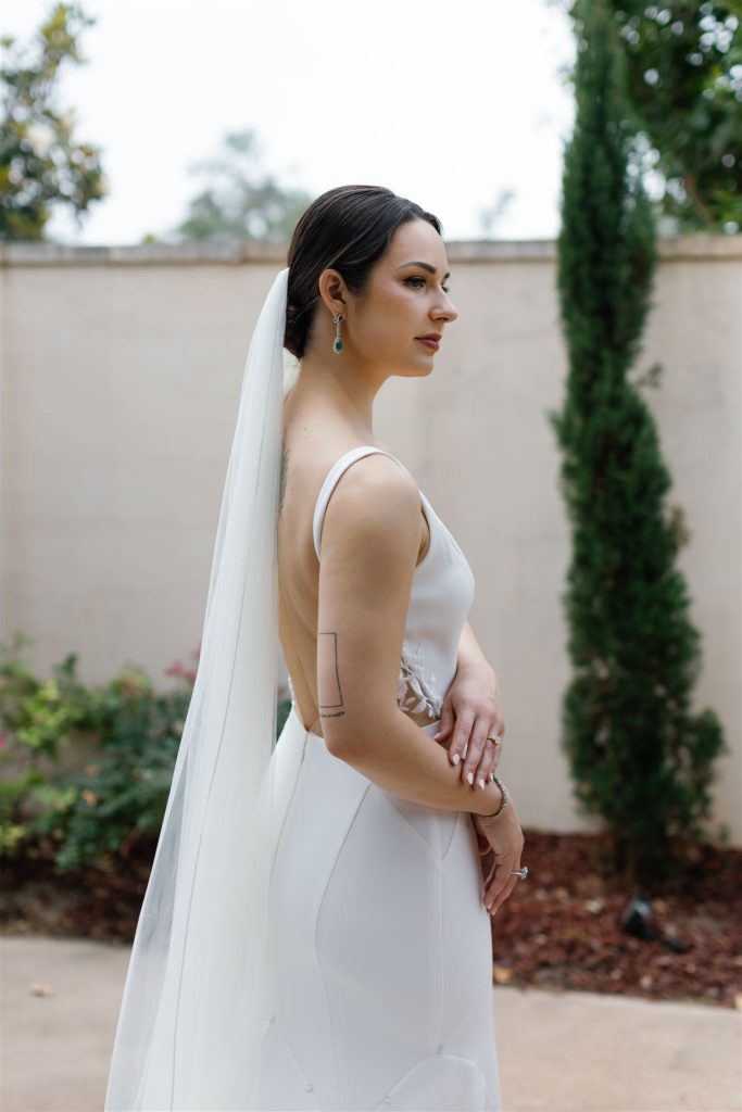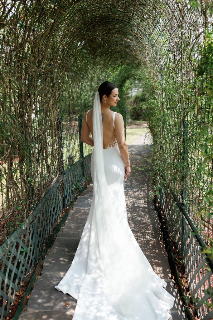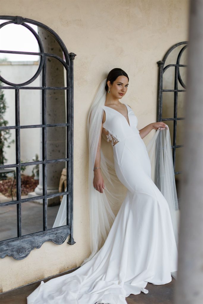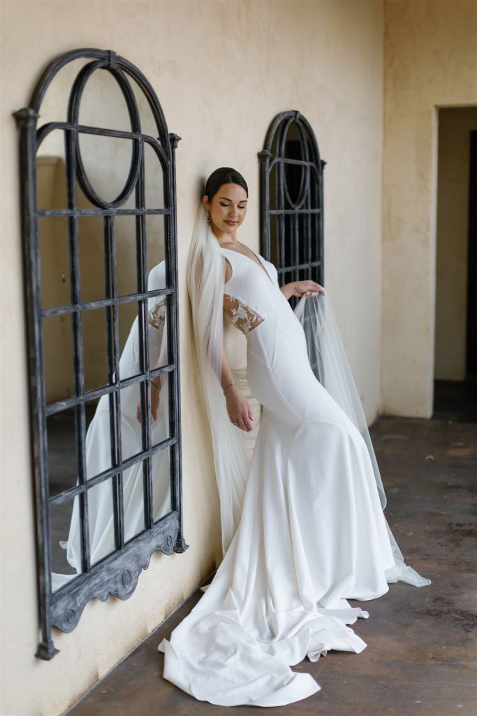 “We really were able to lean into the French elegance of the venue and create editorial and timeliness bridals. I love the veil shots in front of the water feature. Kristen’s bridals showcased her beauty as well as the beautiful wedding venue where she married the love of her life!” – Colette Elyse Photography