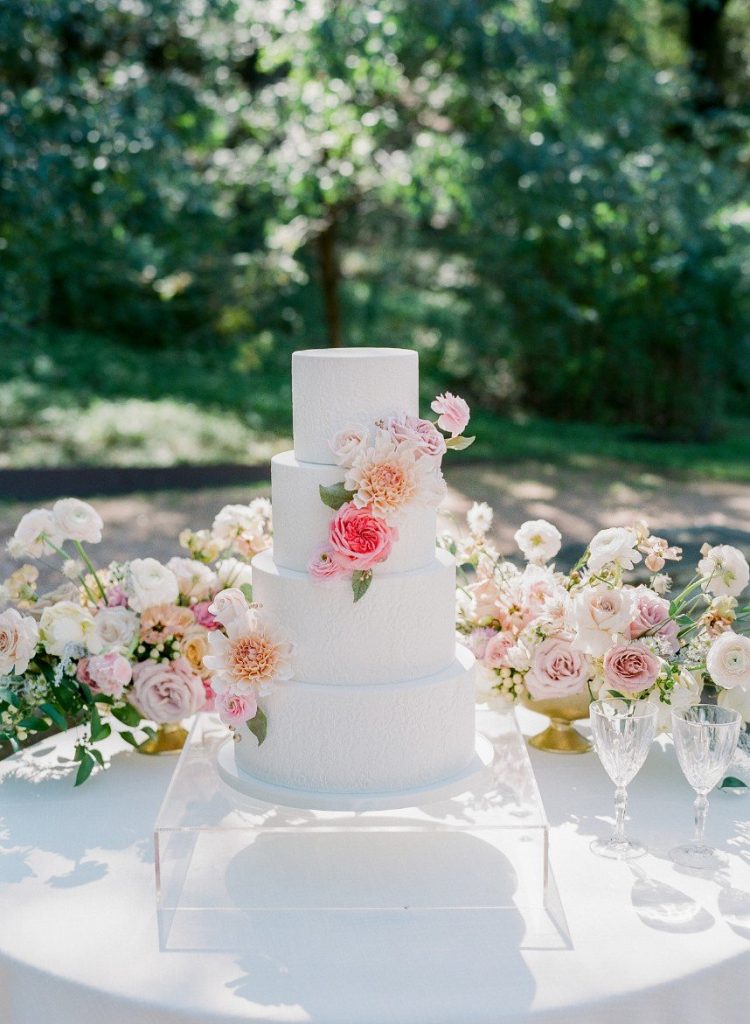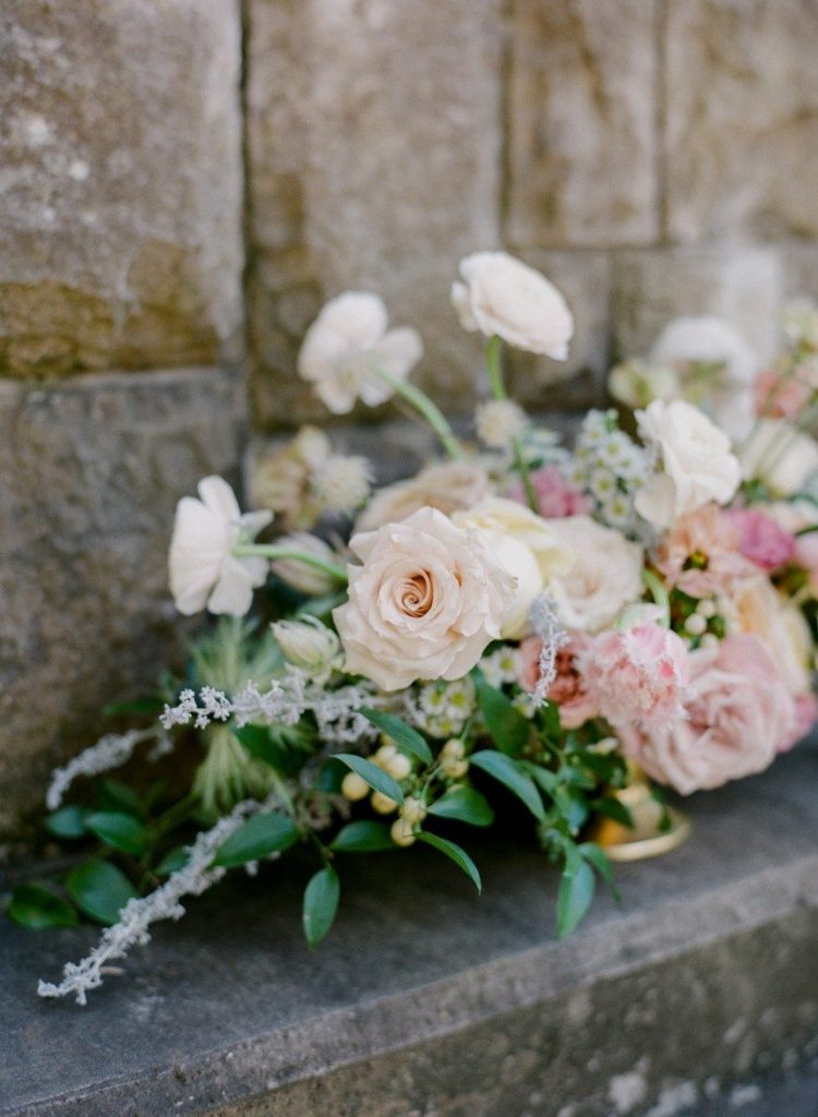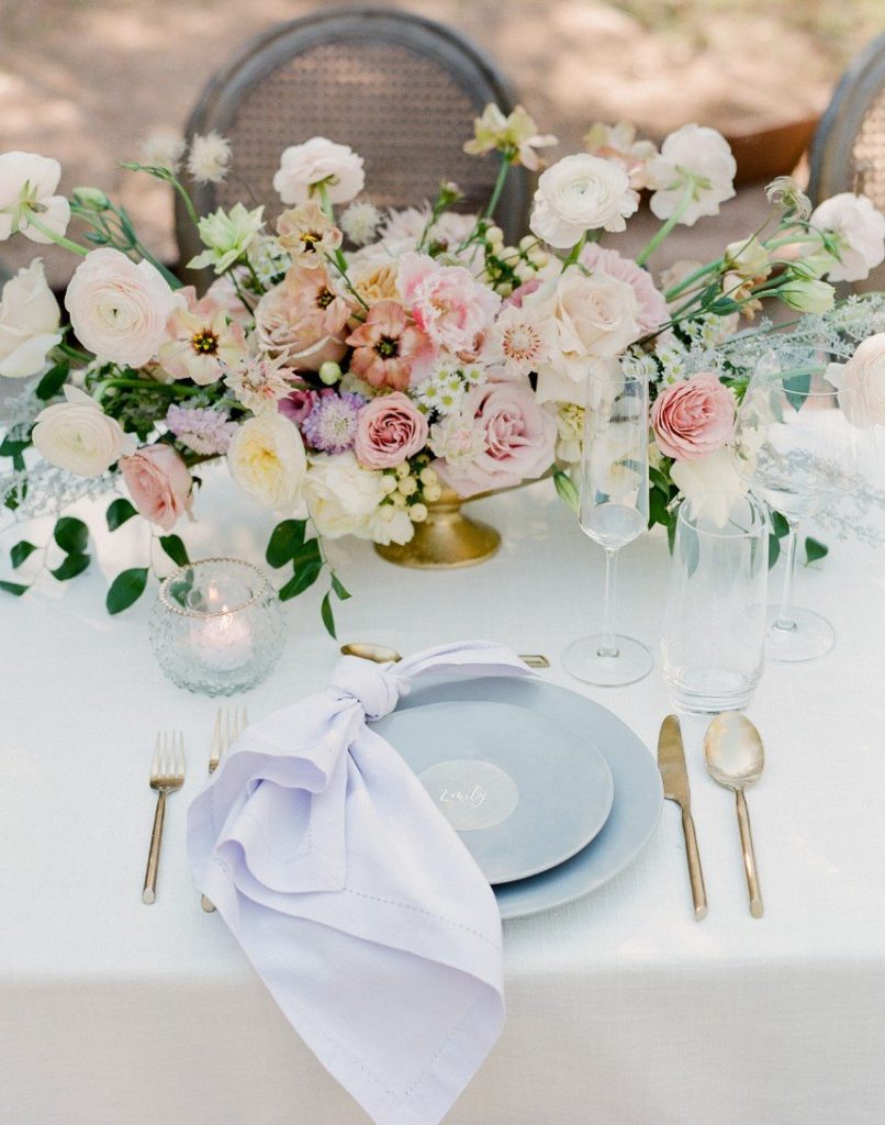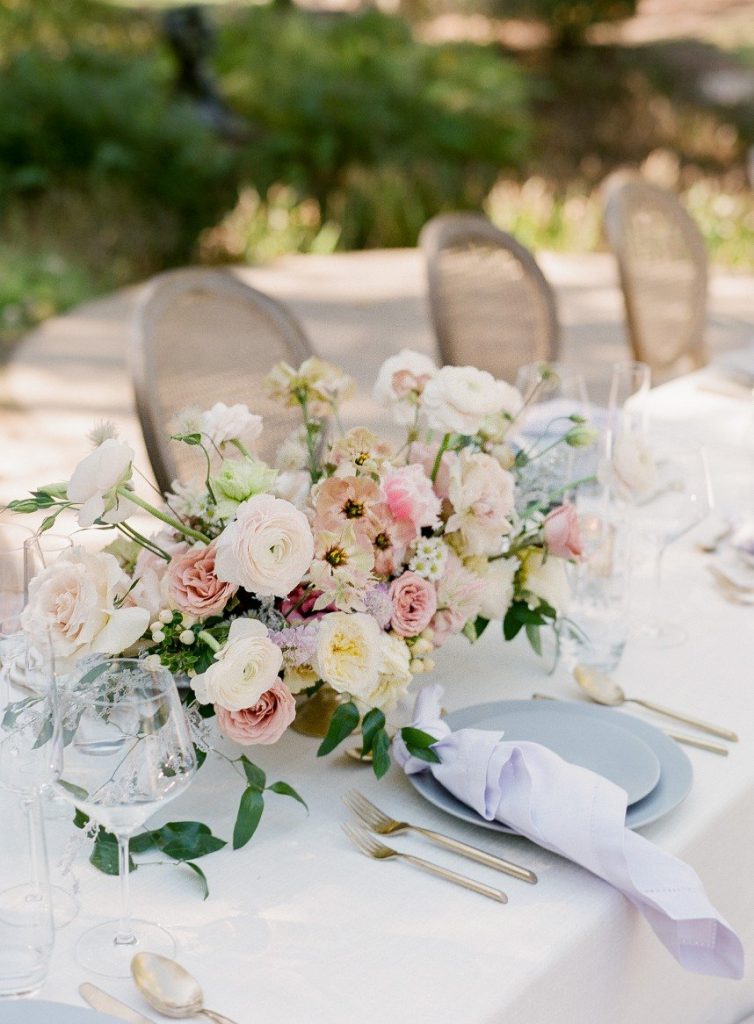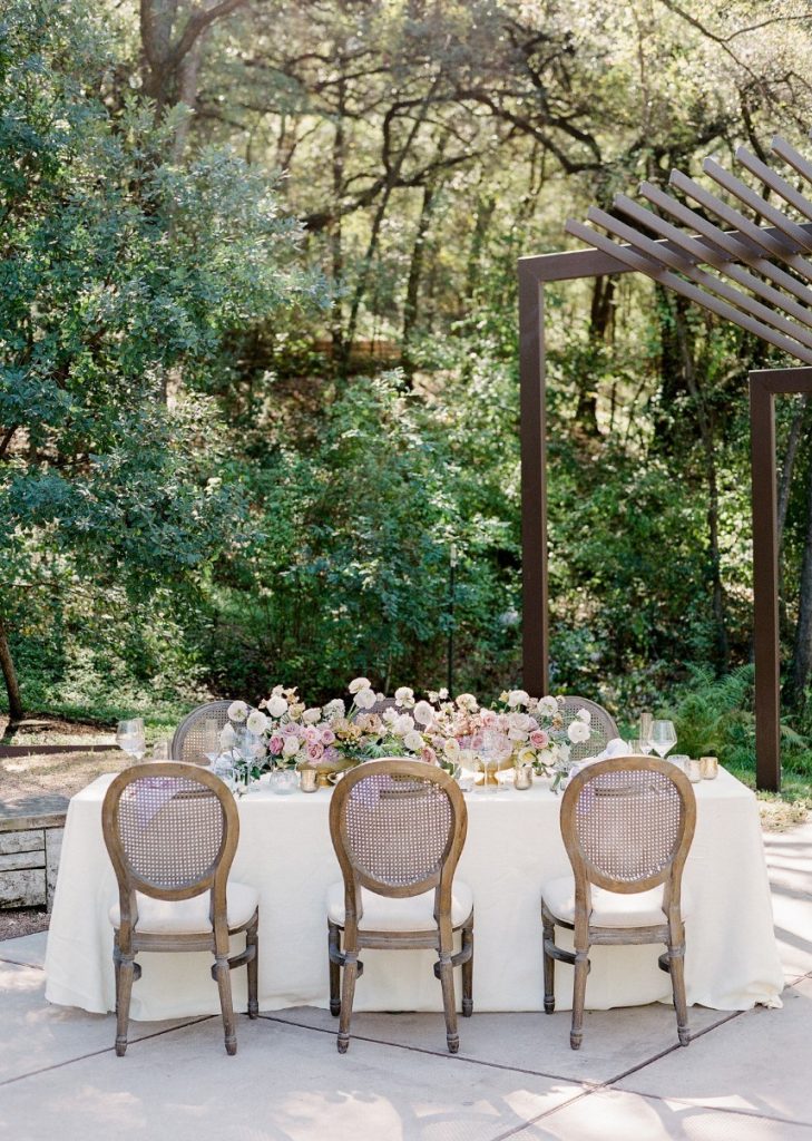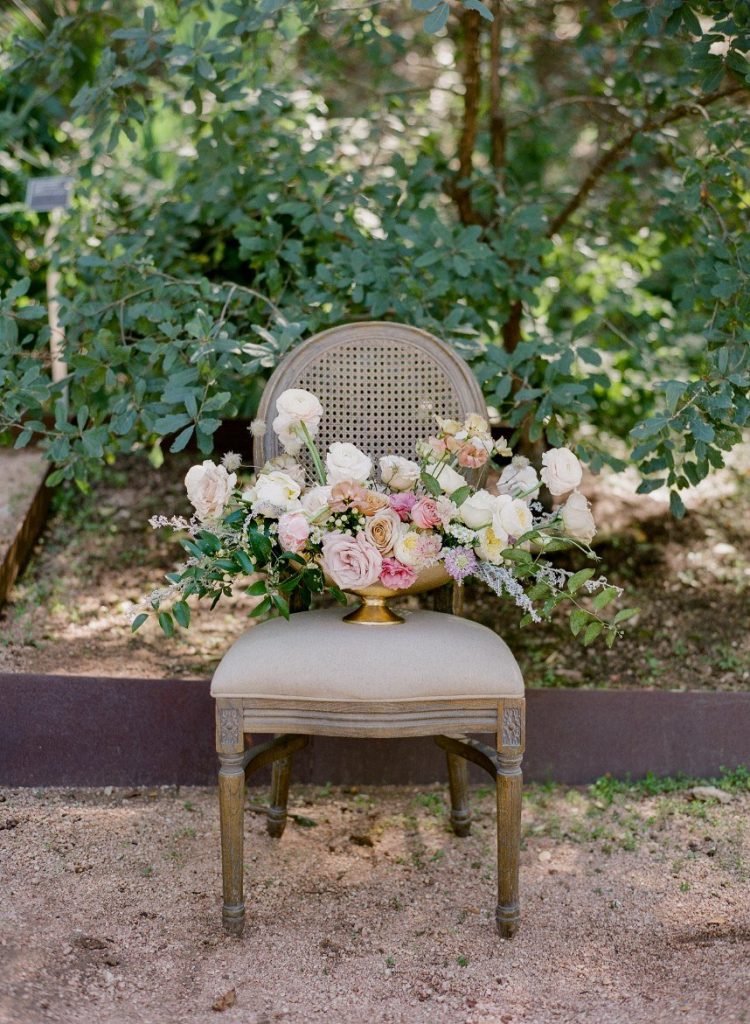 From the planner, Lexie Perez of Pearl Events Austin: “I was inspired by a French garden, with soft pops of color and lots of texture. I wanted all colors to be somewhat muted, but still make a statement, and I wanted all the flowers to be a little wild to play off of the garden theme. I am a big fan of muted color, just to add a little something to the design. It’s still soft and romantic, but incorporates a wide range of color because of the softness of the palette.”