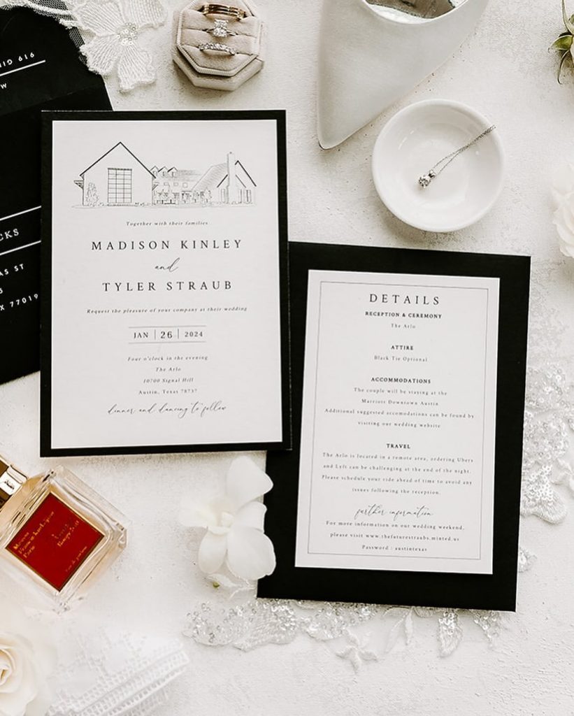 College sweethearts, Madison and Tyler, had a stunning b&w wedding to celebrate their love.
