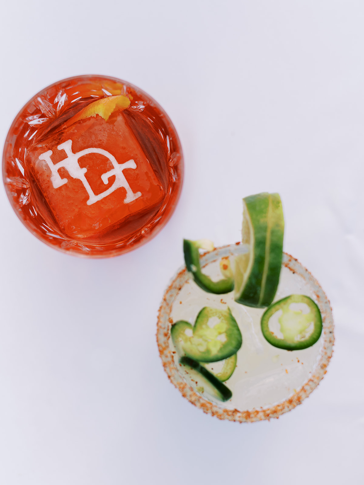 If you’re looking for a fun way to enhance your wedding, consider Full Spectrum’s custom cocktail ice cubes. Each cube is typically engraved with 1-3 initials of your choice, adding a fun and personal element to each drink you serve. These custom cubes pair especially well with a luge or ice bar. Whether you choose you and your fiance’s first initials, or the first letter of your new shared last name, these cubes are sure to be a hit!